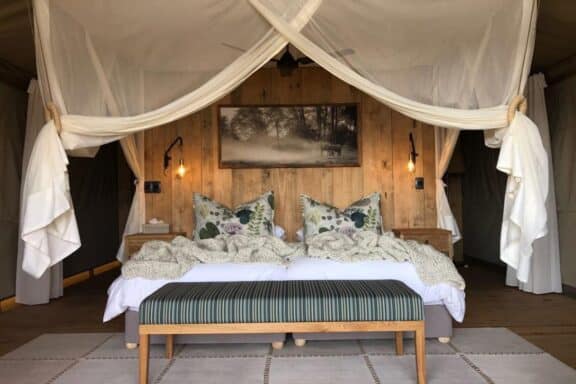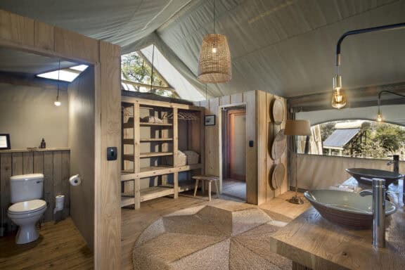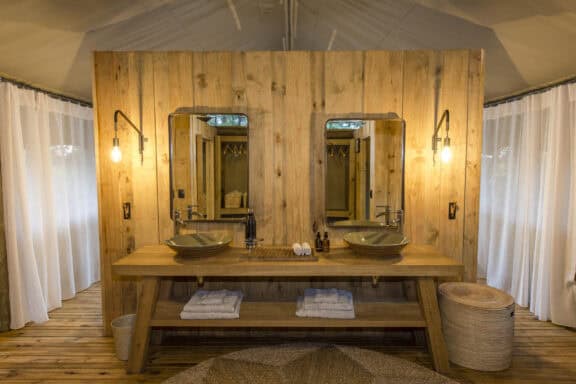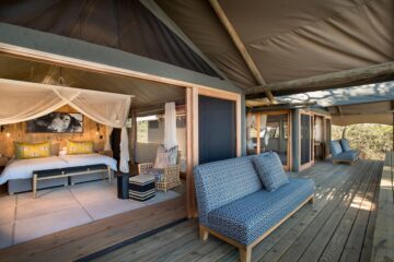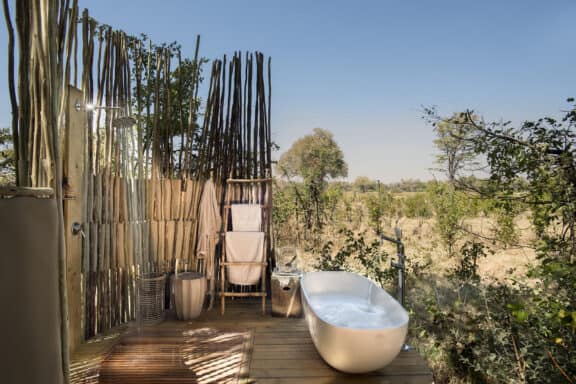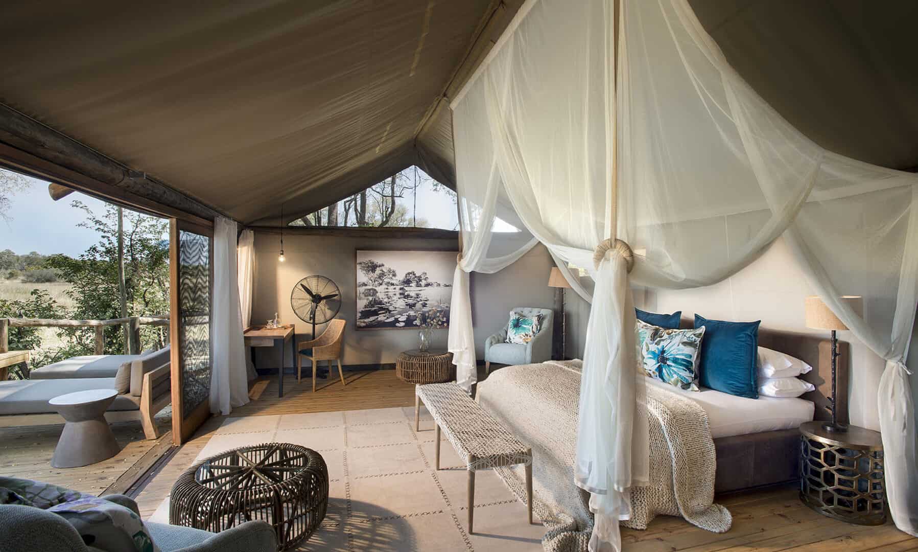 This light, bright camp showcases comfortable luxury amid the game rich floodplains of Khwai. The canvas sided rooms have spacious, beautifully designed interiors with a large veranda encouraging relaxation in the afternoon.