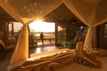 Located on the banks of a lily-covered lagoon, home to hippo and a favourite drinking spot for elephant and buffalo, the big game quite literally comes to you.