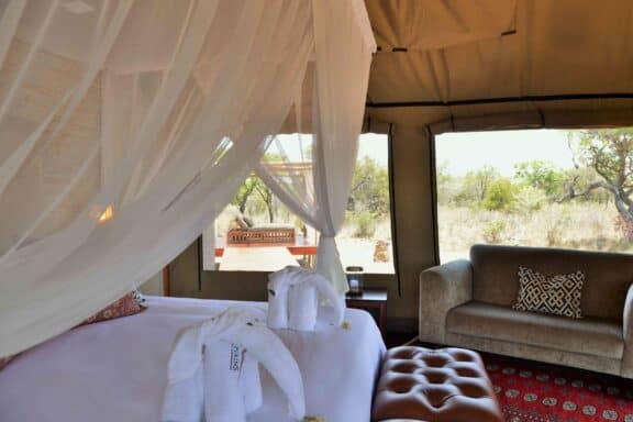 Set against the backdrop of the magnificent Waterberg Mountain Range in the Limpopo Province, close to Mabula Game Reserve, this tented camp offers magnificent views on wide-open savannahs.