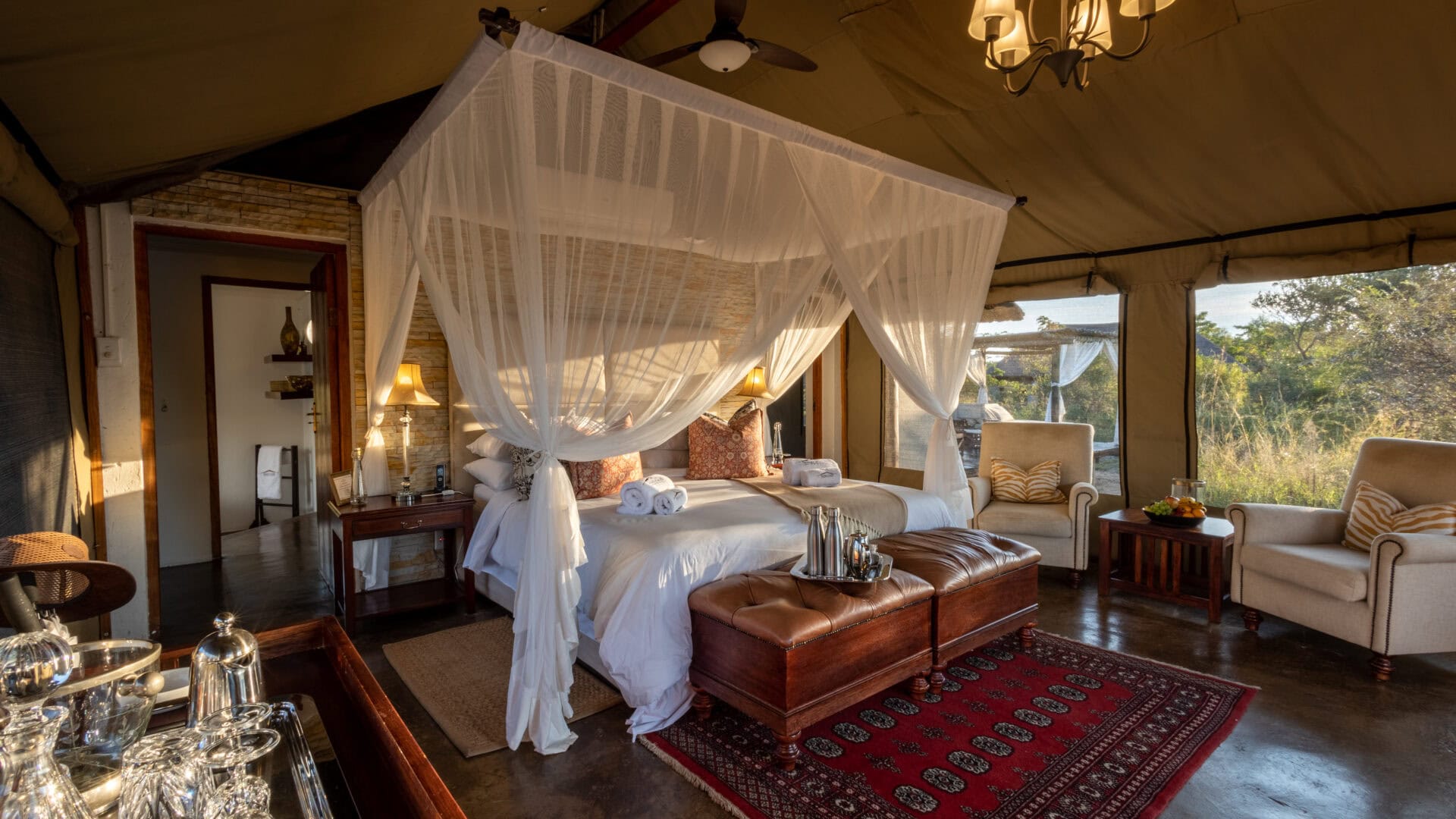 All tented suites are tastefully appointed with sunken baths, separate showers, and private facilities. There is a fully–stocked mini bar fridge, with tea and coffee facilities and air-conditioning.