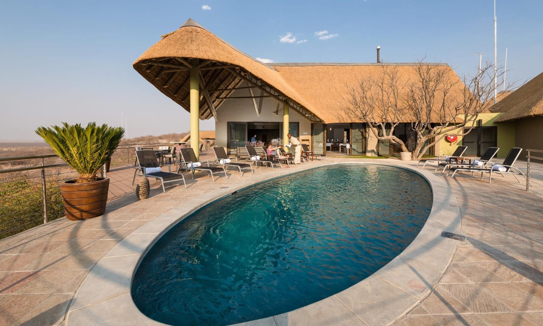 The lodge feels intimate and spacious, perched on a hillside with wide views across the plains. Rooms are stylish and comfortable, each with a private deck to take in the scenery. A central lounge, bar, and dining area flow out to a viewing deck and swimming pool – ideal for quiet afternoons between drives.
