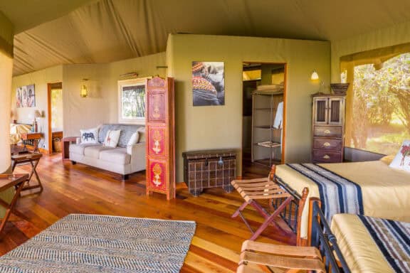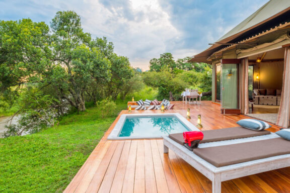 It is situated in the southern, wilder corner of Kenya’s mighty Masai Mara game reserve close to the confluence of the Sand and Keekerok Rivers – an idyllic geographical feature that attracts teeming wildlife.