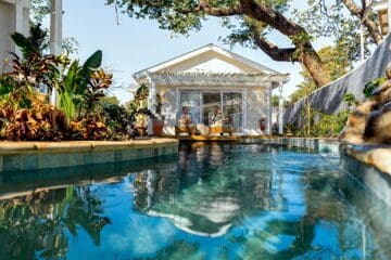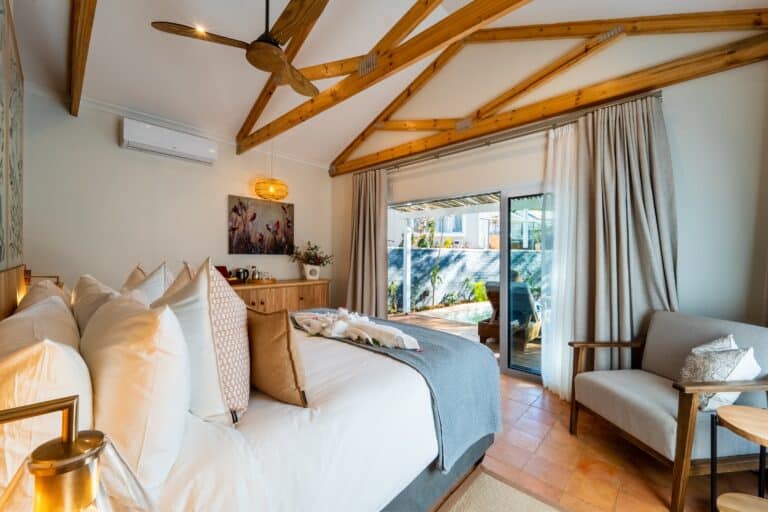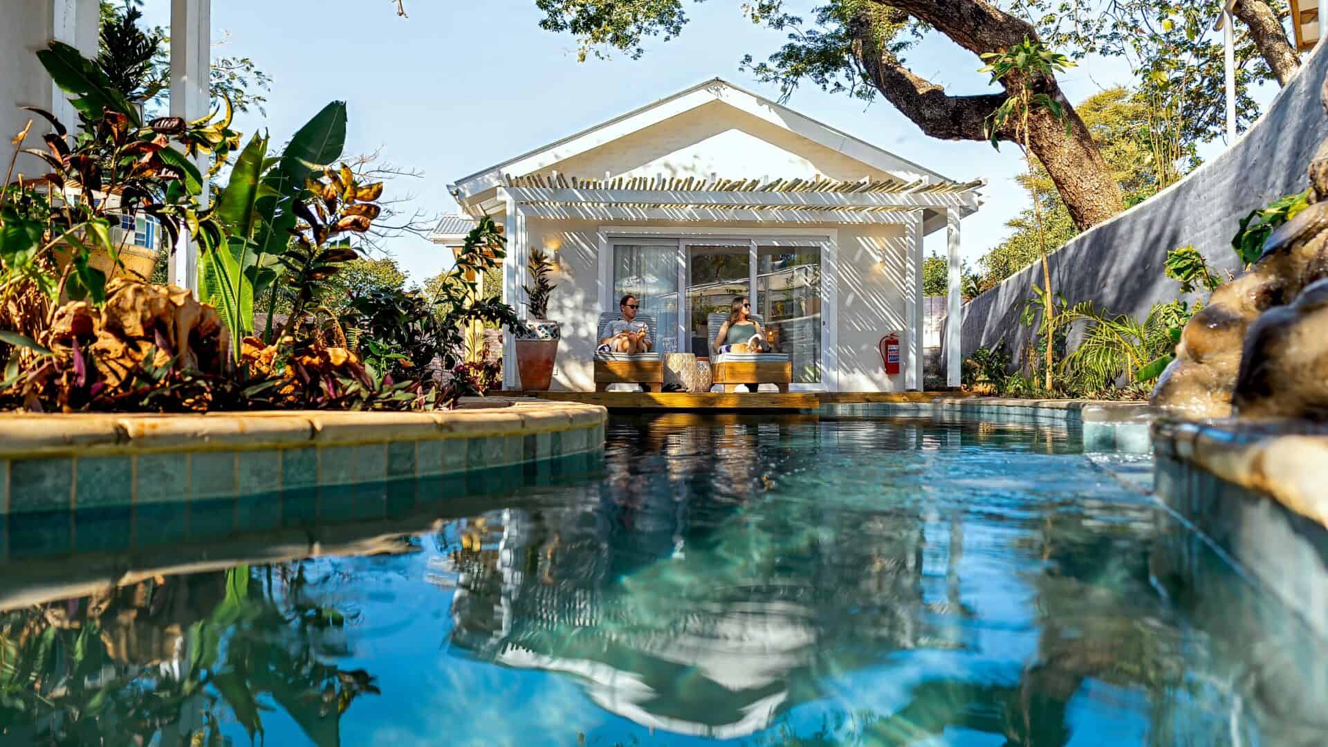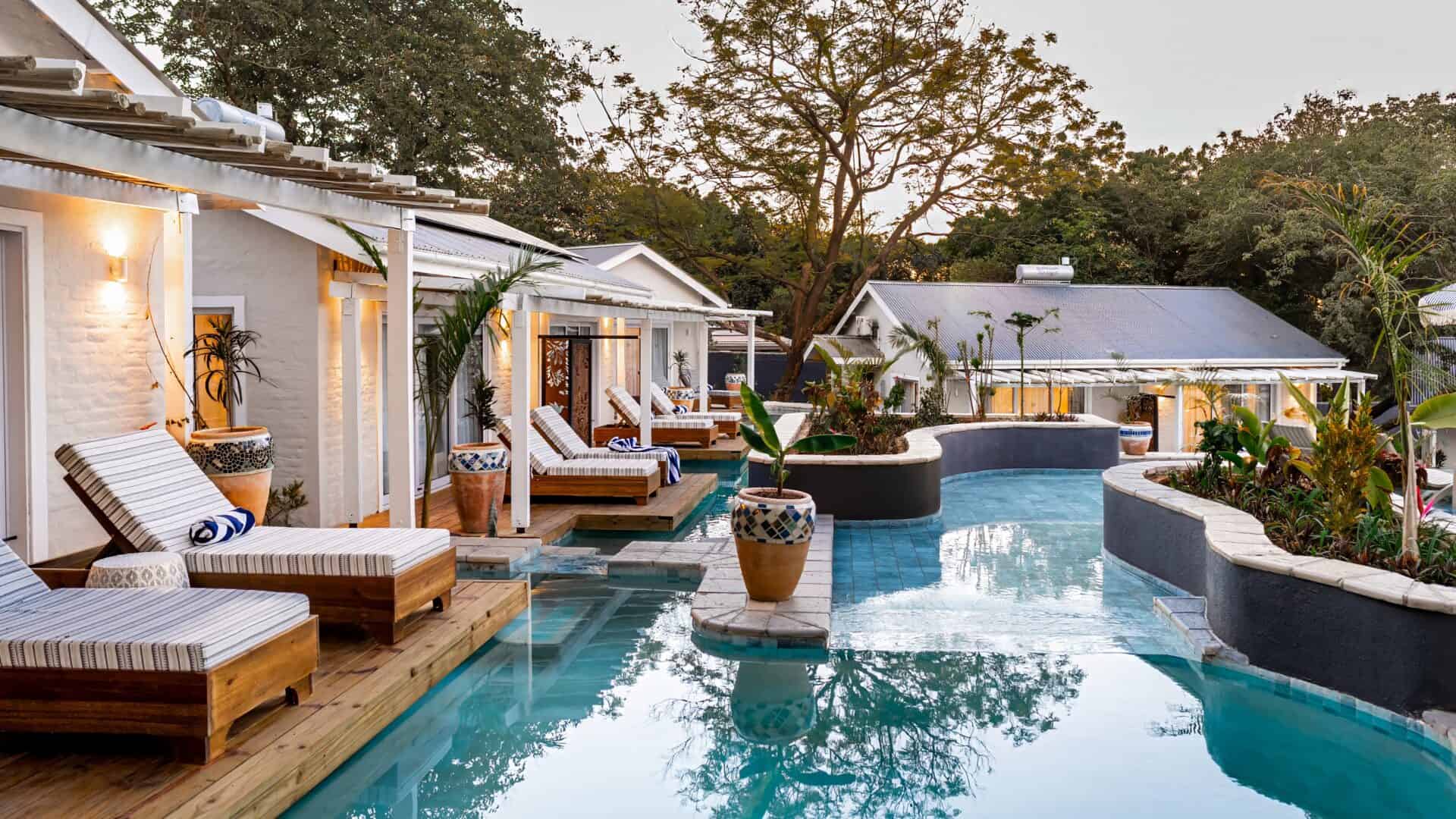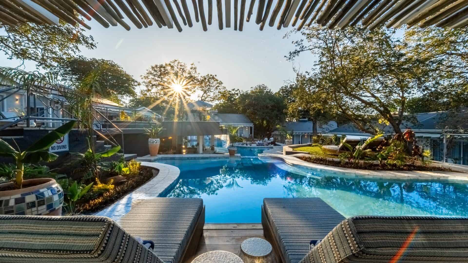 Set in Victoria Falls, Samanzi Luxury Cabanas is an exclusive sanctuary combining elegance with lush tropical surroundings. This intimate retreat features just 15 poolside cabanas, each designed for seclusion and comfort, with private indoor and outdoor spaces that open onto tranquil garden views.