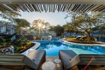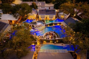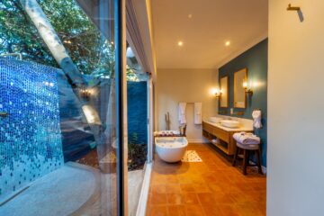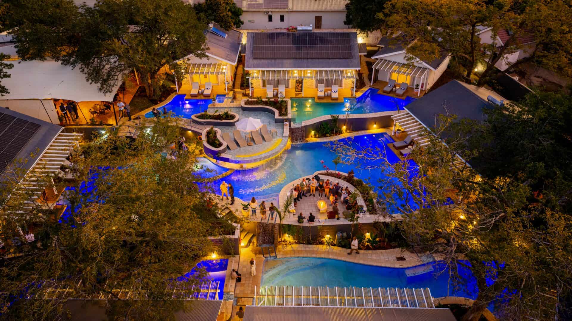 You are invited to relax beside six split-level swimming pools, linked by islands and cascading waterfalls. A sophisticated swim-up bar provides the perfect spot for handcrafted cocktails, while the sunken fire pit set within the main pool creates an inviting space for evening gatherings.
