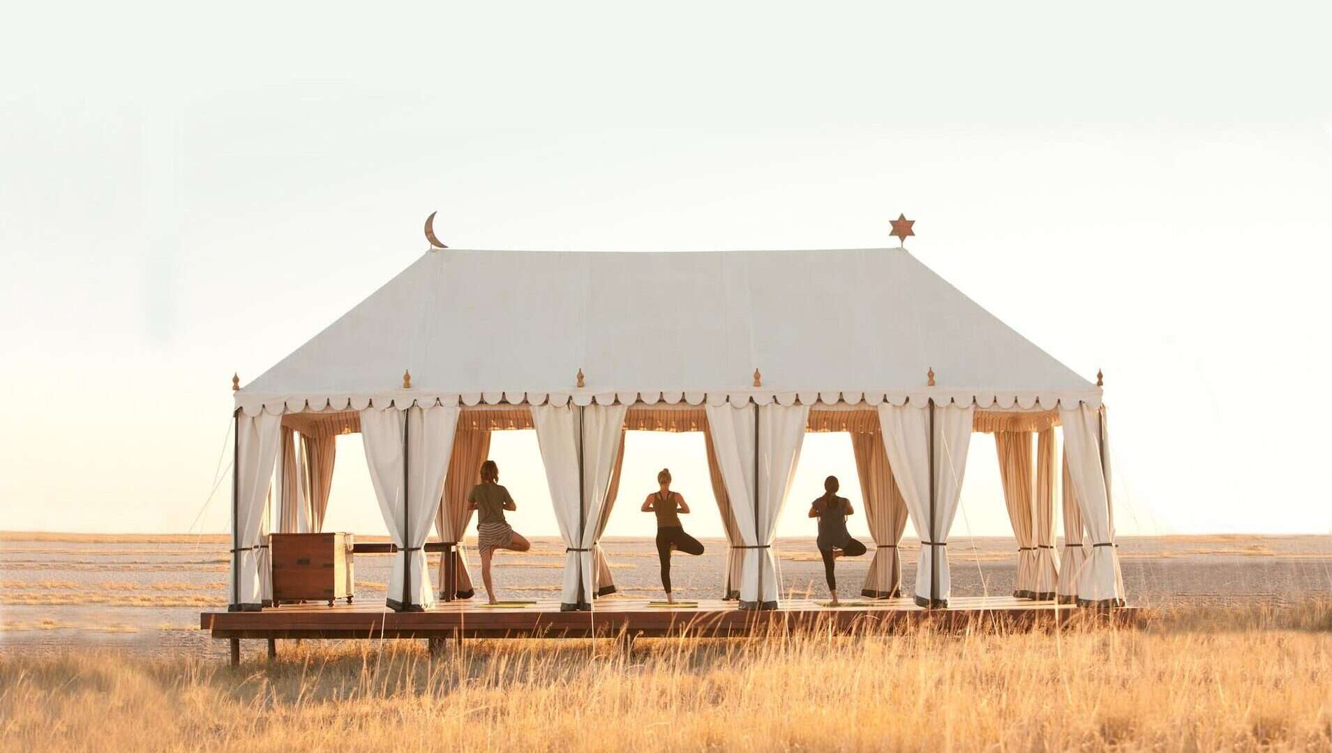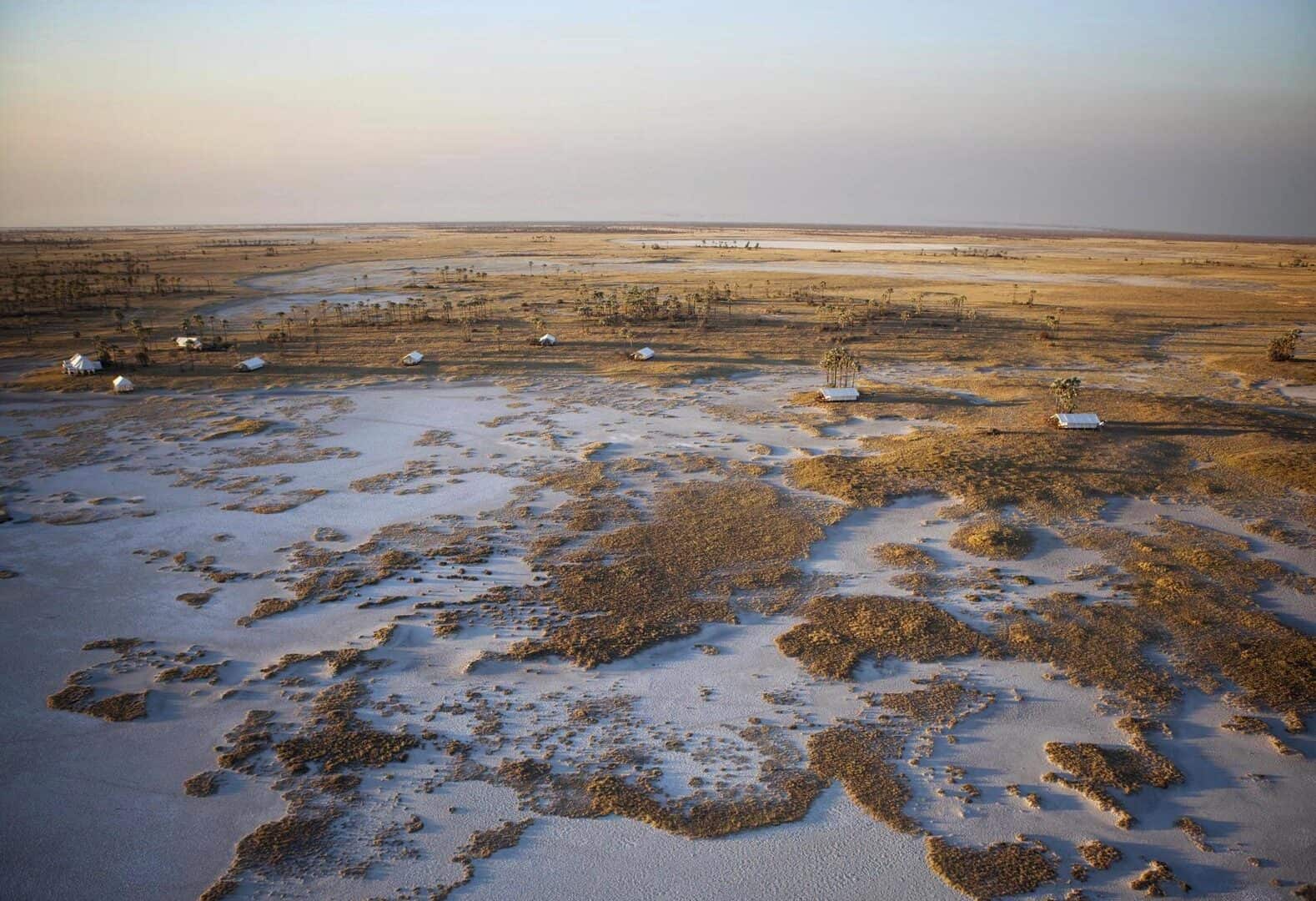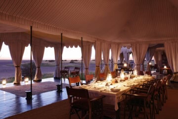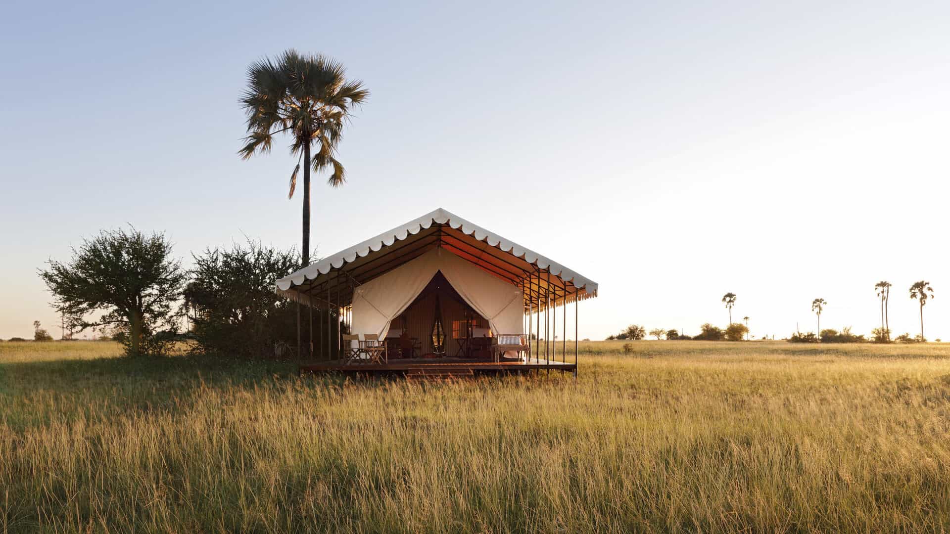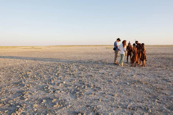 Classic white tents perched on the shore of an enormous sparkling salt pan, each sheltered by a cluster of stately desert palms. Spectacular vistas, soothing and serene – pared down safari elegance with minimal ecological impact, it is the nothingness that attracts. San Camp runs almost entirely on solar energy, thus dramatically reducing the use of fossil fuels. The perfect place to relax, unwind and retreat.