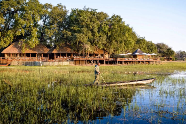 Located on historic Chief’s Island in Botswana’s Okavango Delta, Chief’s Camp offers an exclusive safari experience in one of Africa’s most remarkable wetland ecosystems. The camp features 10 luxurious Bush Pavilions and the palatial Geoffrey Kent Suite, all elevated above a floodplain that transforms into a mesmerising maze of waterways between May and September.