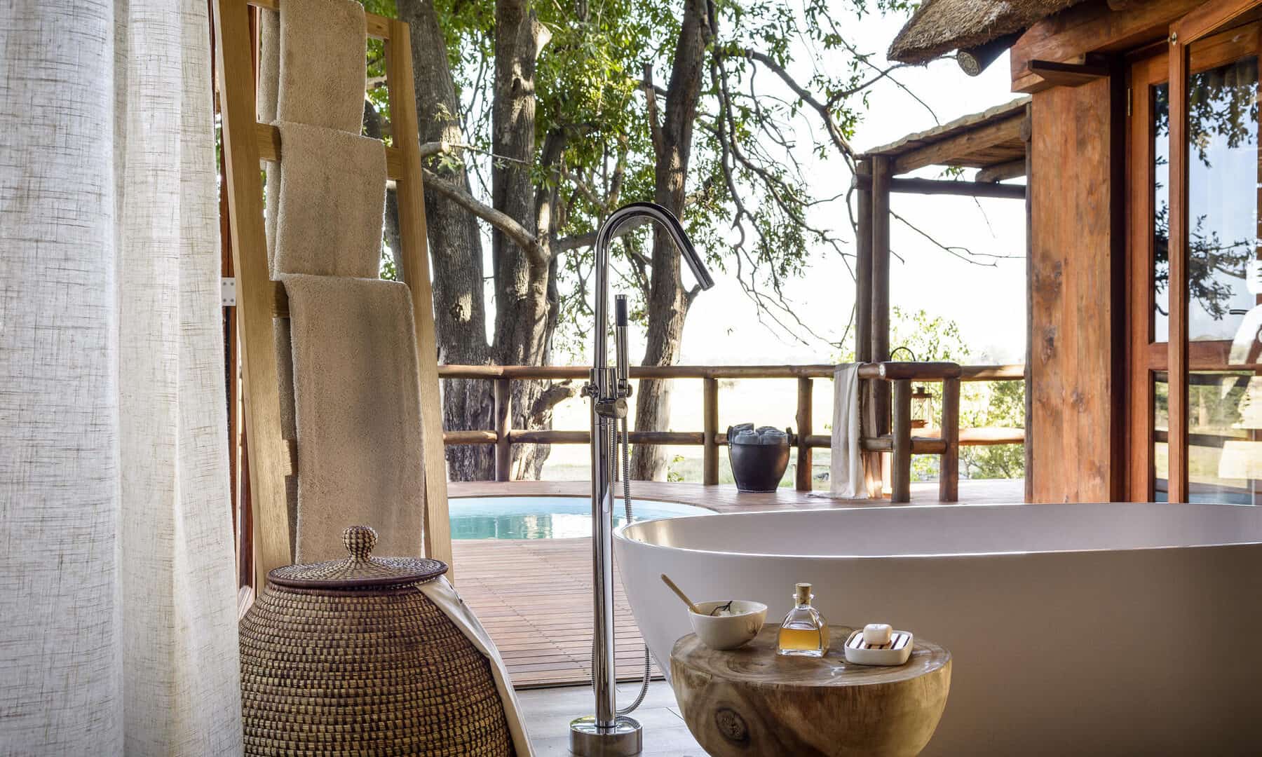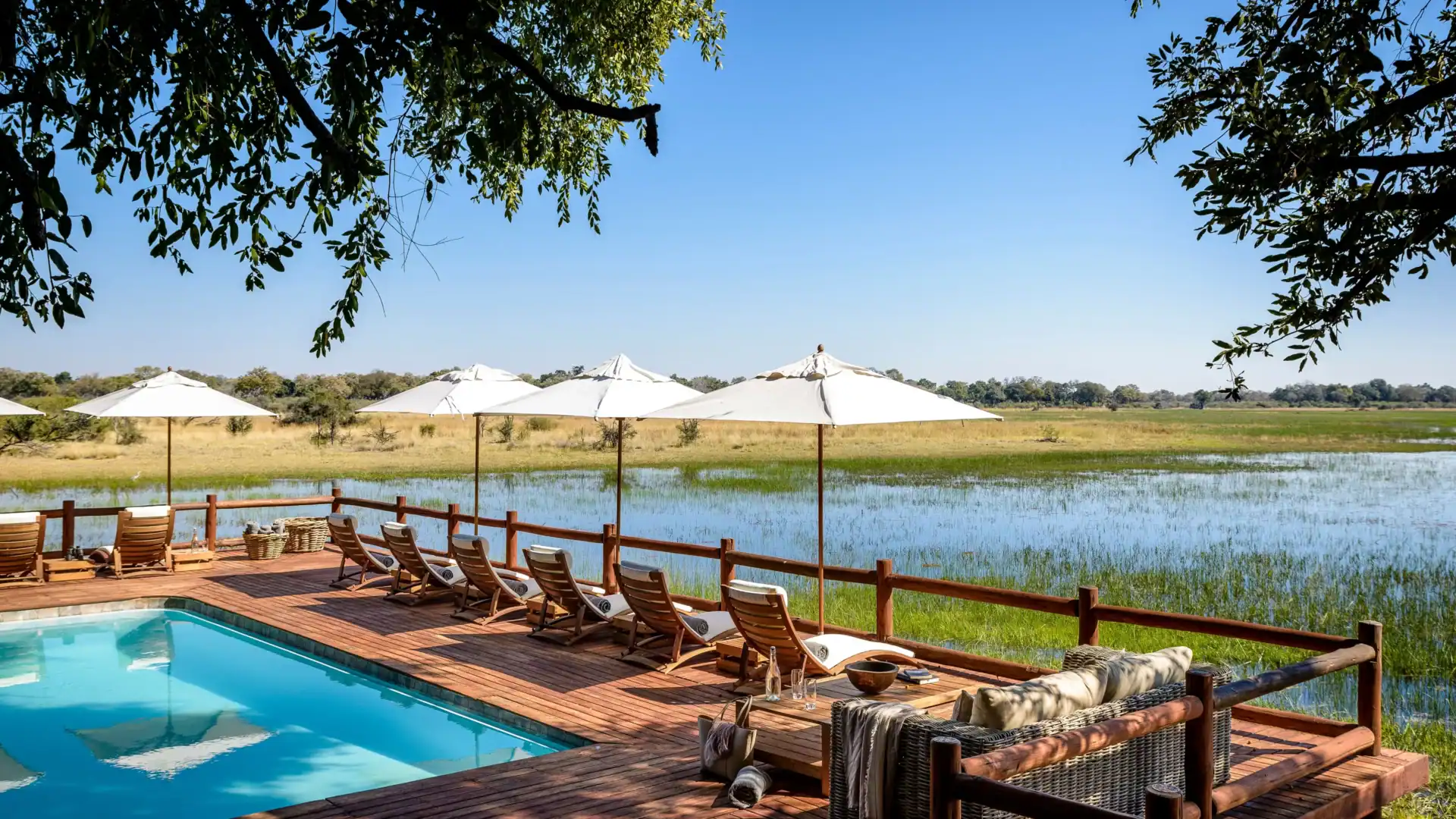 Each pavilion showcases contemporary safari style with traditional touches, featuring private decks complete with plunge pools and outdoor baths beneath the African stars. The camp, positioned on land historically favoured by local chiefs, provides unparalleled wildlife viewing opportunities in the Moremi Game Reserve, which encompasses 40% of the Delta.