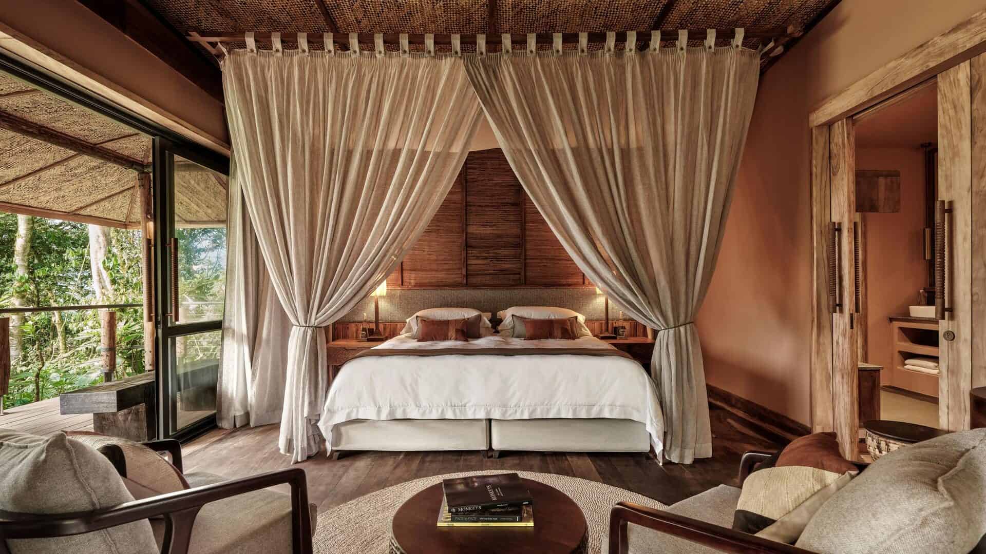 Having recently reopened in June 2025 following a full redesign, Gorilla Forest Lodge comprises 10 standalone villas beautifully and eco-consciously crafted to sit in harmony with Uganda’s Bwindi Impenetrable National Park.