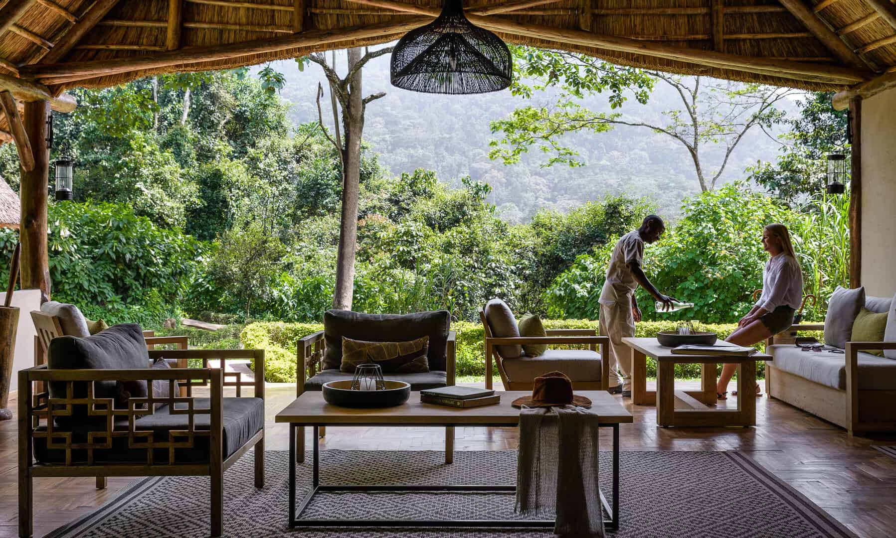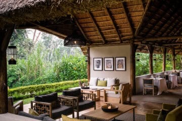 Each villa opens onto a private viewing deck with sweeping views over the jungle canopy, while the lodge’s shared spaces feature an inviting indoor-outdoor lounge, bar, and restaurant. You can also unwind at the spa, browse the boutique for locally crafted souvenirs, or spend time in the Explorers Lounge, a cosy spot filled with books and maps about Bwindi’s rich flora, fauna, and culture.