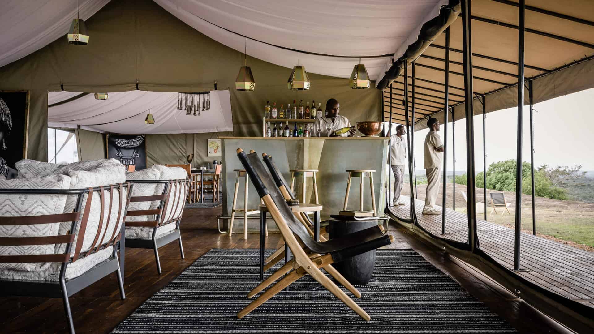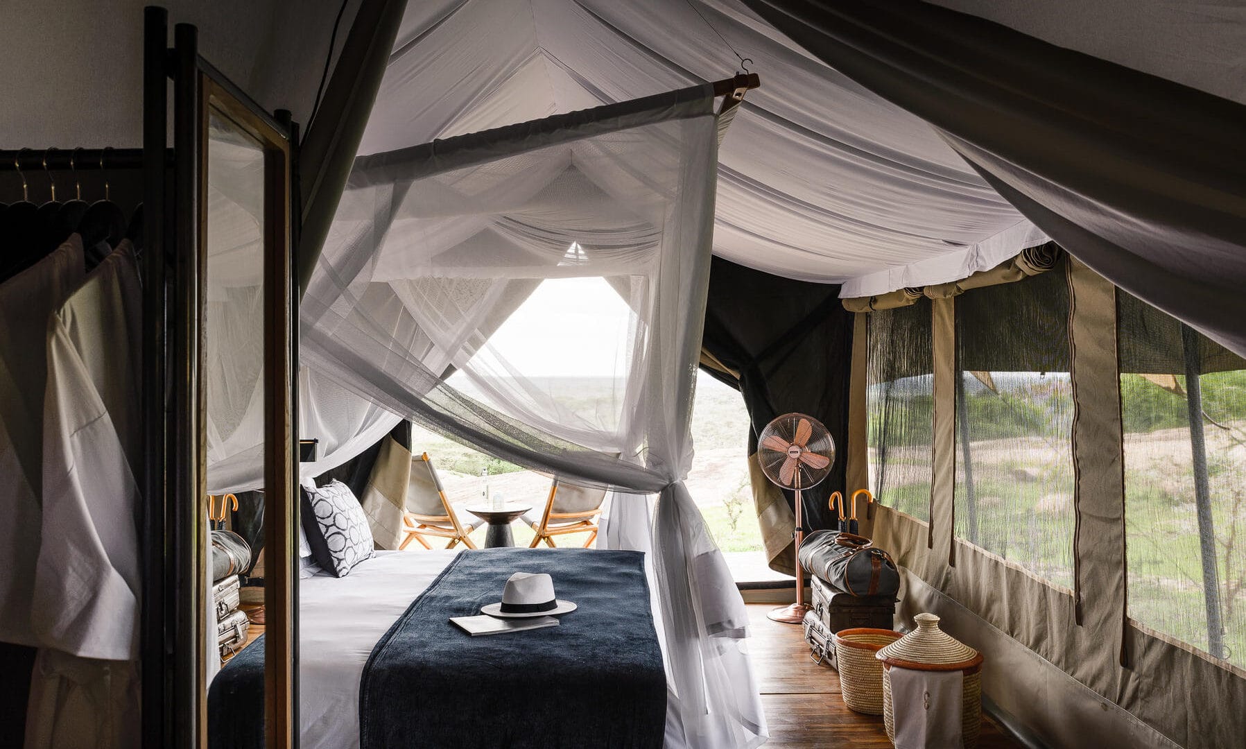 This intimate mobile camp, featuring just 10 luxury tents, perfectly balances classic safari nostalgia with modern comfort. Each tent combines century-old safari style with contemporary practicality, complete with king-size beds, en-suite bathrooms, and charming touches like vintage Singer sewing machine washstands.
