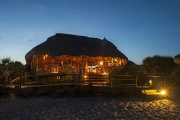 The lodge has six eco-friendly suites, each with ocean views opening onto the sandy beaches of the Indian Ocean with verandas overlooking the Saadani National Park.