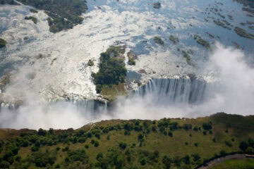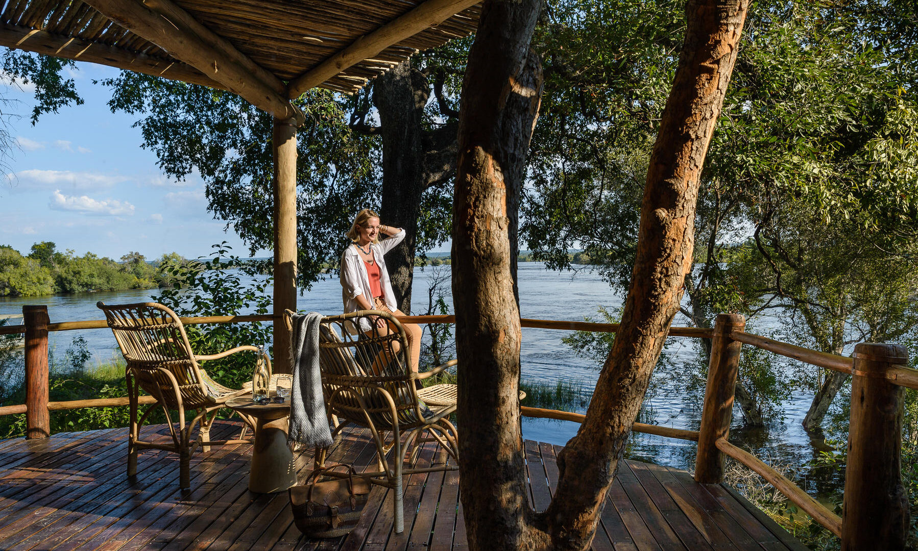 The air, filled with the distant roar of the world’s largest curtain of falling water, the lodge combines classic safari elegance with contemporary comfort, featuring elevated wooden structures adorned with exposed timber, soaring ceilings, and local Zambian flourishes.