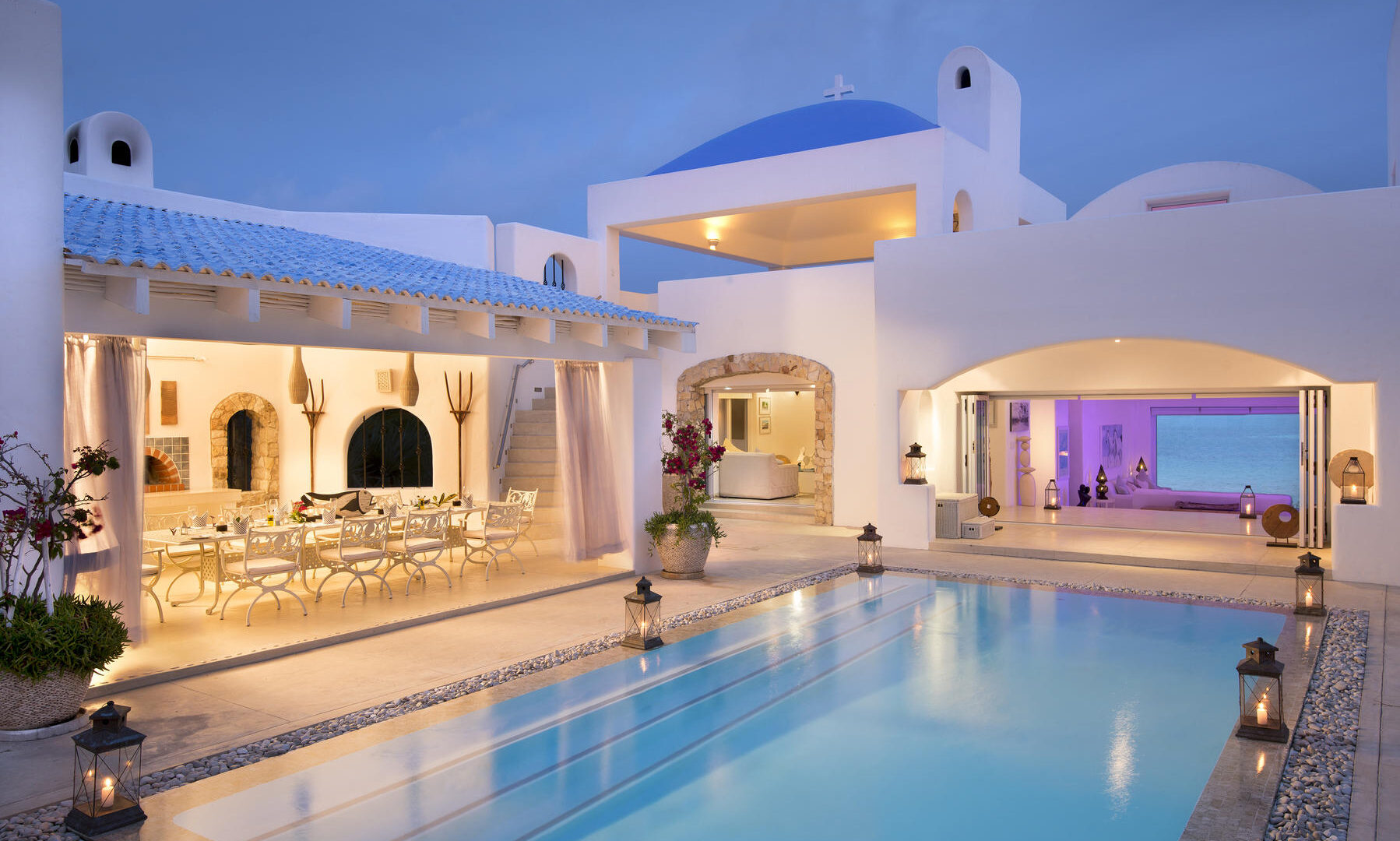 Vilanculos is serviced by daily flights, with the Villa a 20 minute drive from Vilanculos International Airport. The Main Villa offers five sea-fronting, air-conditioned, en suite bedrooms, each with a private patio. The living area, comprising a lounge, TV room, ocean facing deck with martini pool, secluded patios, wind-protected courtyard pool and dining spaces are available. The Chapel is a two bedroom villa, ideal for honeymoon couples. It is ocean facing with its own lounge, kitchen and dining room with a private pool and patio. Villa da Praia our three bedroom villa ideal for 3 couples sharing or families of 2 adults traveling with 4 children. It is ocean facing with its own lounge, kitchen and dining room. A private host will be available throughout your stay. Santorini has a 38 ft Supercat Catamaran and a 27 foot fishing and leisure boat available for charters. Transfers to Vilanculos are included in the tariffs, and a range of water activates are cost inclusive. Local operators provide a range of additional activities and on-site Spa treatments available.