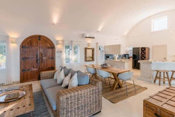 Vilanculos is serviced by daily flights, with the Villa a 20 minute drive from Vilanculos International Airport. The Main Villa offers five sea-fronting, air-conditioned, en suite bedrooms, each with a private patio. The living area, comprising a lounge, TV room, ocean facing deck with martini pool, secluded patios, wind-protected courtyard pool and dining spaces are available. The Chapel is a two bedroom villa, ideal for honeymoon couples. It is ocean facing with its own lounge, kitchen and dining room with a private pool and patio. Villa da Praia our three bedroom villa ideal for 3 couples sharing or families of 2 adults traveling with 4 children. It is ocean facing with its own lounge, kitchen and dining room. A private host will be available throughout your stay. Santorini has a 38 ft Supercat Catamaran and a 27 foot fishing and leisure boat available for charters. Transfers to Vilanculos are included in the tariffs, and a range of water activates are cost inclusive. Local operators provide a range of additional activities and on-site Spa treatments available.