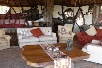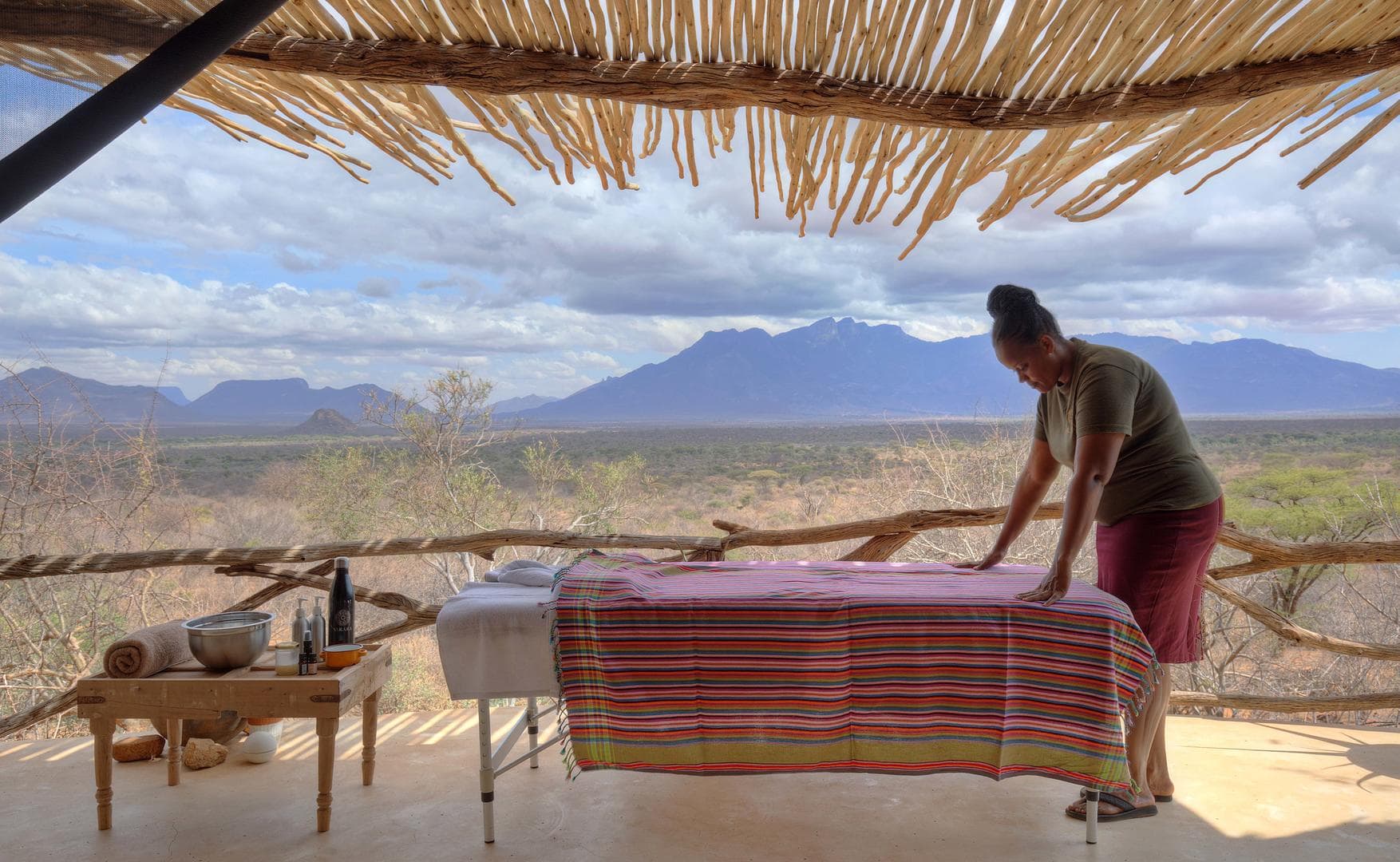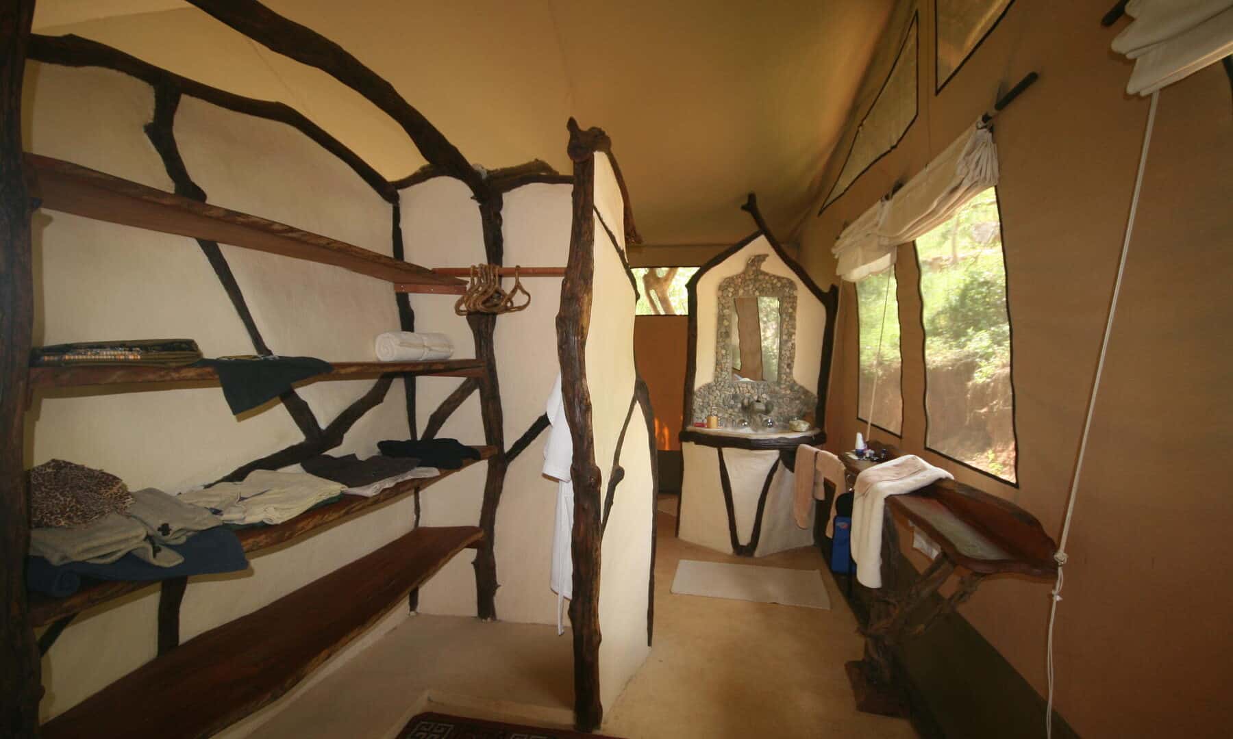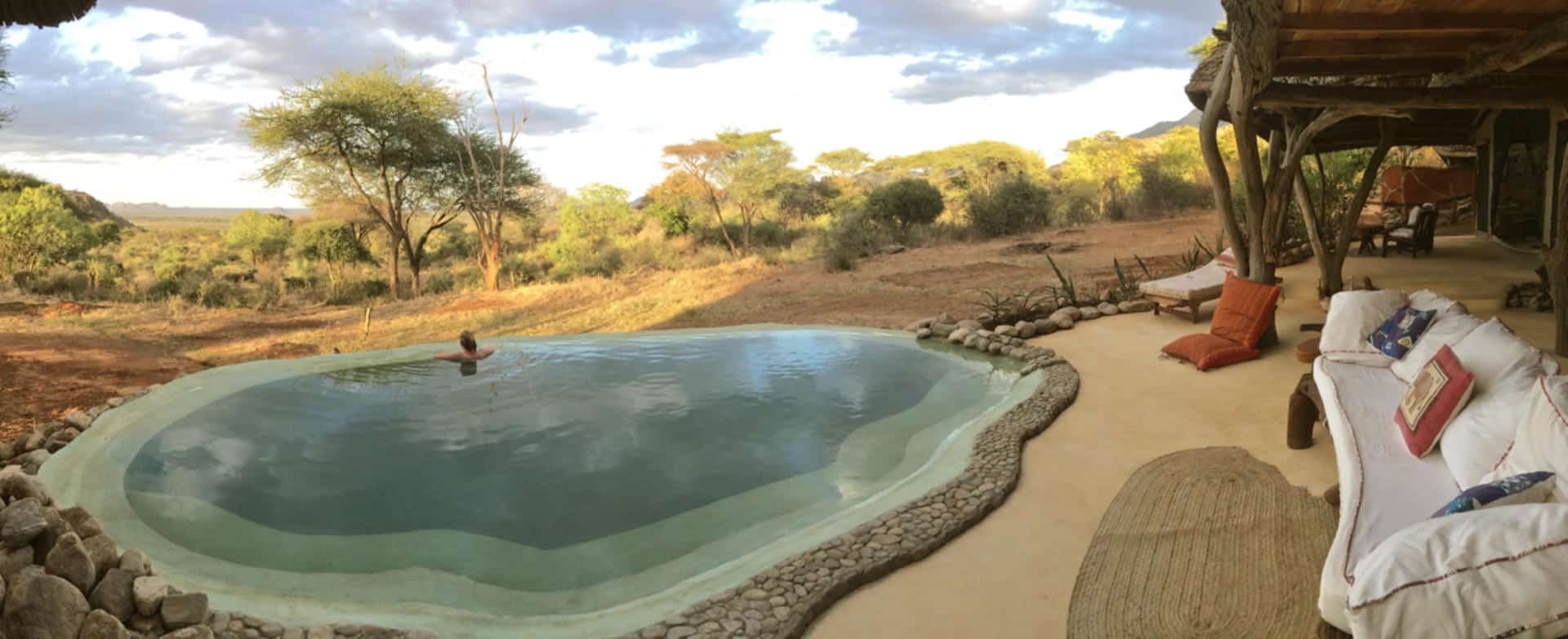 Sarara has six luxury tents, each positioned to maximize the stunning views of the Mathews Range of mountains and the animal watering hole. The tents are spacious and high-ceilinged, with plenty of cupboard space, electric lighting, and 24-hour hot and cold running water.