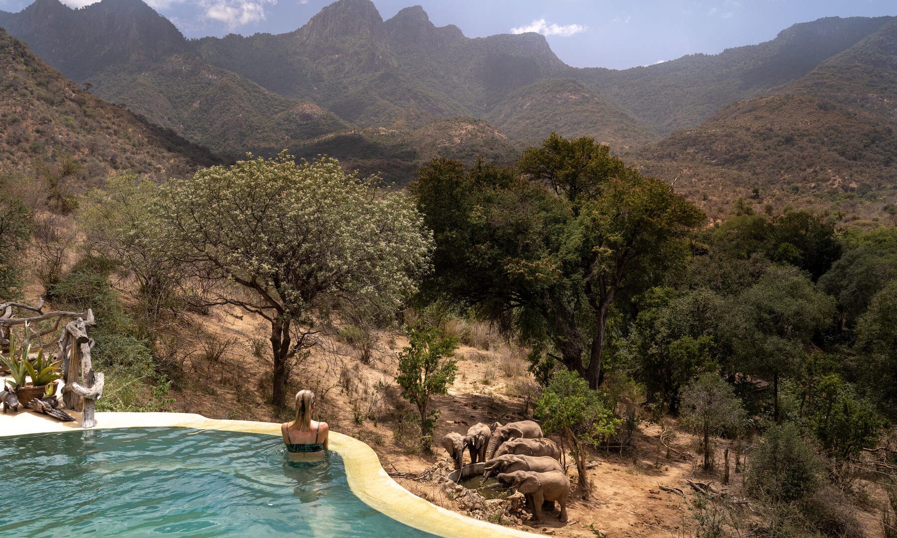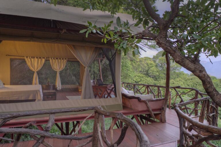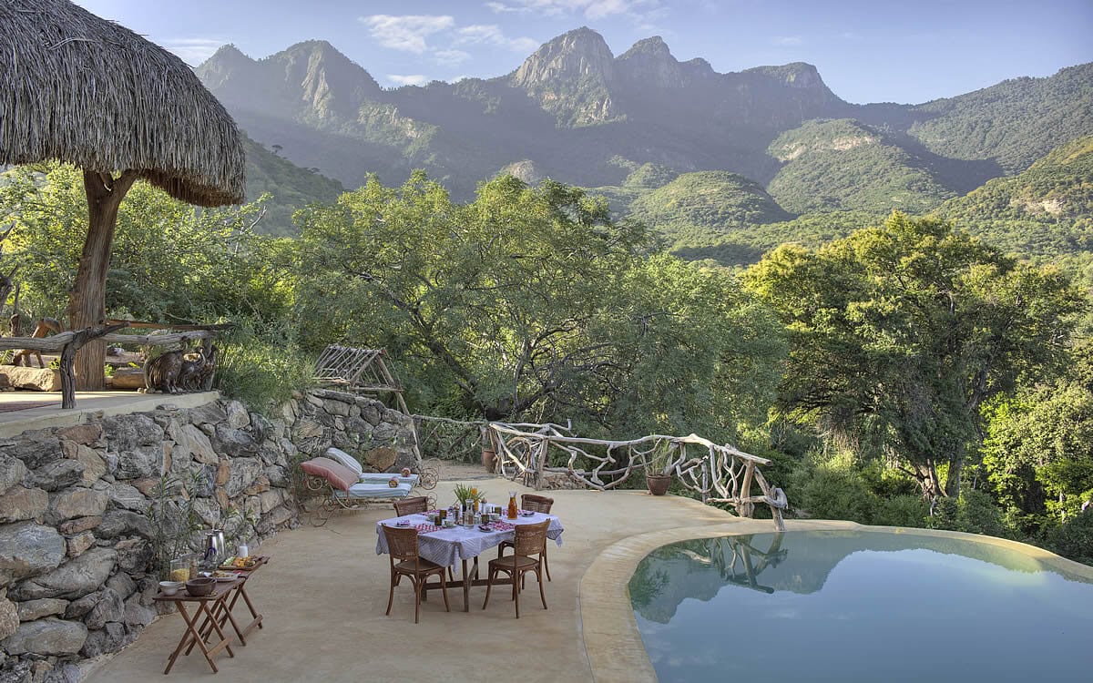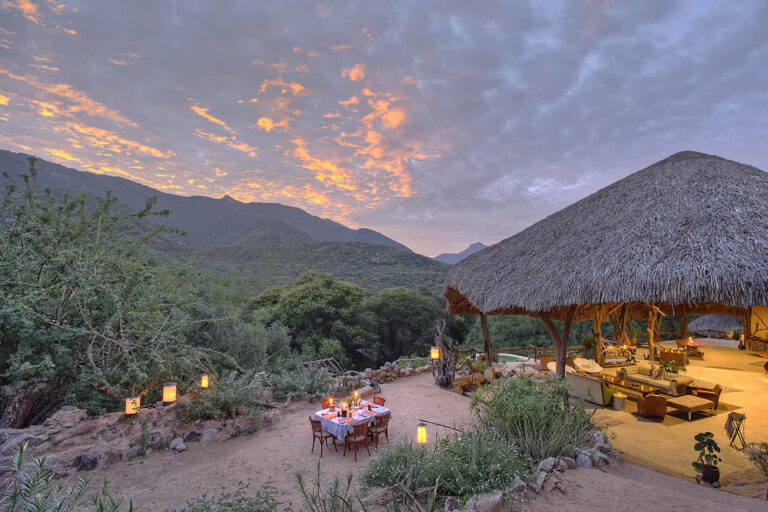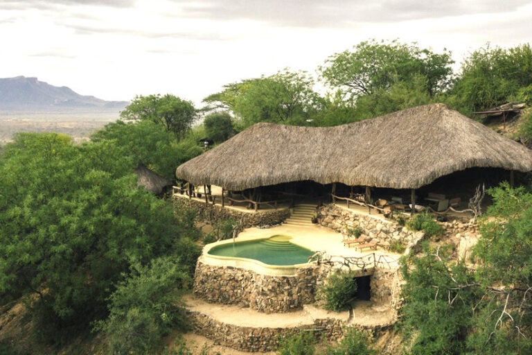 It features 8 tents built on platforms within the tree canopy, providing you with a distinctive view of wildlife roaming below. A main mass area and swimming pool command incredible views of Mount Uarges, one of the seven sacred mountains to the Samburu.