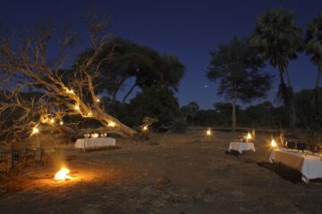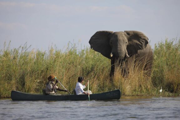 The camp overlooks an expanse of narrow channels and low set reed islands teeming with game, with the magnificent Zambezi escarpment as the backdrop. Guaranteed private guiding, activities include day and night game drives, walking safaris, canoeing, boating and fishing.