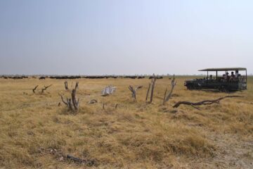 The area’s main feature is the mysterious Savute Channel, which flows and dries up seemingly unrelated to the rainfall. Dry and arid for almost 30 years, animals in the area were sustained by artificial waterholes.