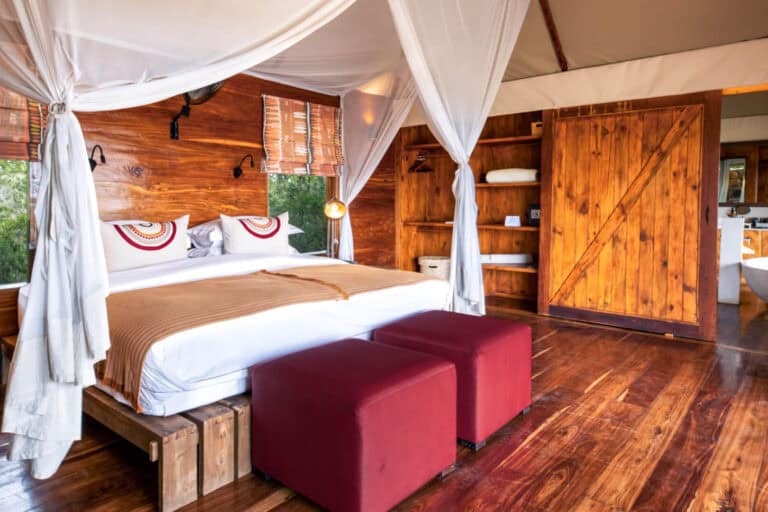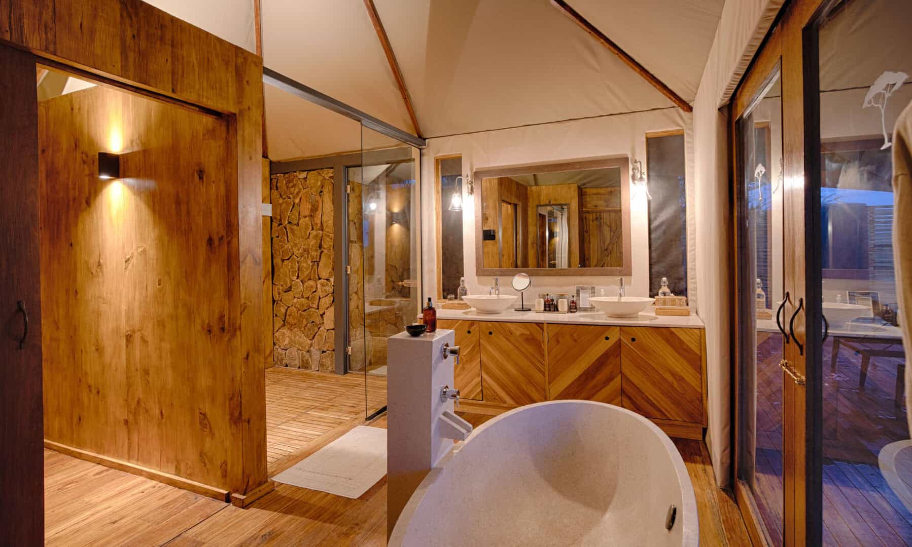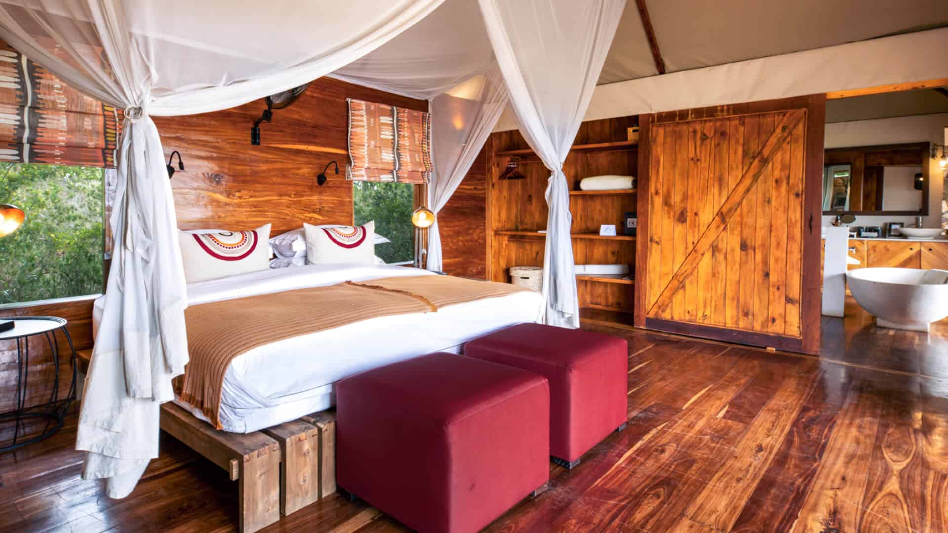 Spacious canvas suites are set across a gentle hillside, each designed with large verandas that frame uninterrupted views of the savannah. A light-filled lounge, library, and bar create inviting spaces to unwind, while the infinity pool and dedicated chef add to the sense of relaxed comfort.