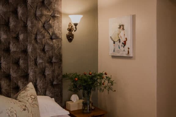 Beginning with a continental buffet of cereals, Alison’s famous granola, natural yoghurt, seasonal fruit salad, cheeses and a fresh bake of the day. Followed by Chef’s choice of one starter, usually a unique, interesting baked, poached or sautéed fruit and one main. These change daily, so if staying more than one evening, you can look forward to a surprise each morning. Traditional bacon and eggs are always available for those that prefer.