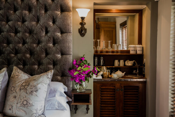 Complimentary afternoon tea with home-baked savoury and sweet goodies is served overlooking the garden on sunny summer afternoons. In winter, complimentary snack platters and a warming welcome drink are offered on arrival.