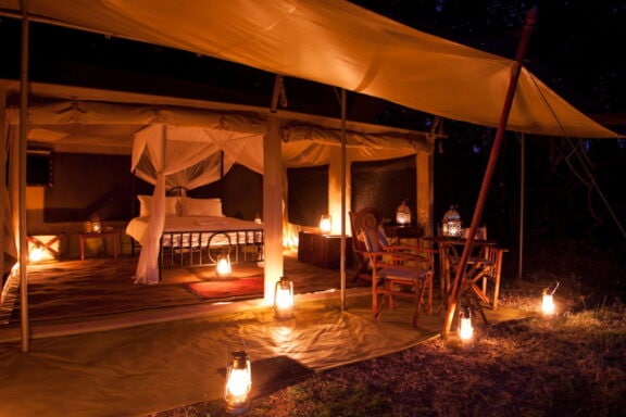 Specially designed campaign furniture adorns the camp creating the atmosphere of the traditional East African and affords a significant measure of luxury.