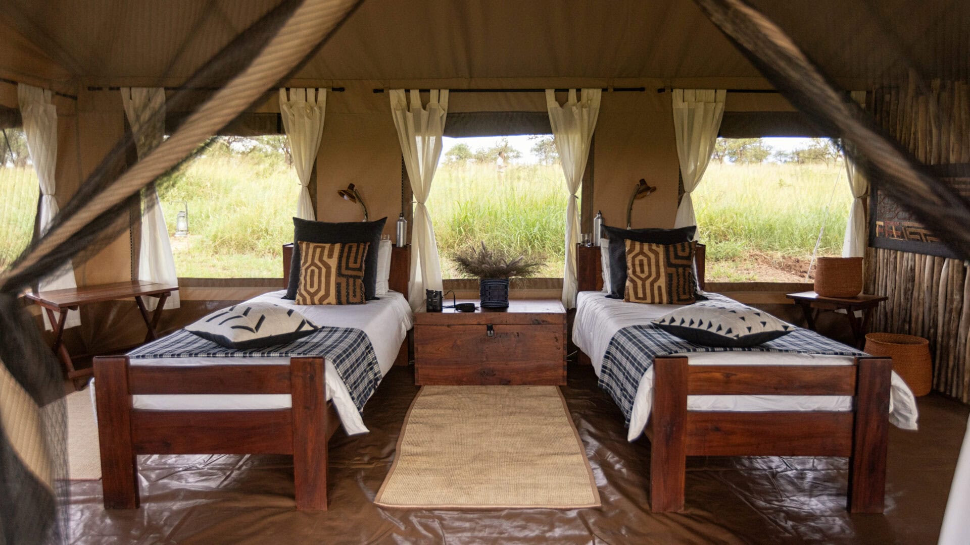 Serengeti Wilderness Camp is situated in a prime location in the central Serengeti, overlooking a wildlife-rich valley with a permanent water source. This classic tented camp offers seclusion, allowing you to relax away from busier areas while still enjoying excellent access to prime game-viewing spots. The camp is designed to minimise its environmental footprint, utilising solar power for lighting and gravity-fed, solar-heated showers to conserve water.