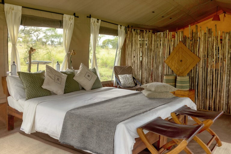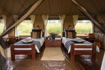 The Seronera area, with its network of river valleys, supports a diverse wildlife population including big cats, elephants, and buffalo herds. Birding in the area is particularly rewarding, and a balloon safari offers a breathtaking bird’s-eye view as you float above the Serengeti plains. This camp is ideal for those seeking an intimate safari experience, offering traditional ‘under canvas’ accommodation with superb food, a relaxing atmosphere, and great hospitality.