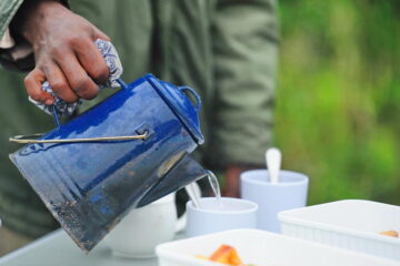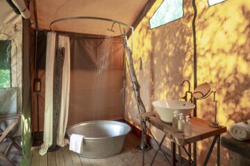At camp, you can unwind on your private deck, cool off in the communal plunge pool, or gather around the crackling campfire. Meals are a highlight, with food prepared over an open fire. Your days unfold with guided walking safaris, where knowledgeable guides enhance your connection to the bush through interpretations of tracks, birds, and potential Big 5 sightings.