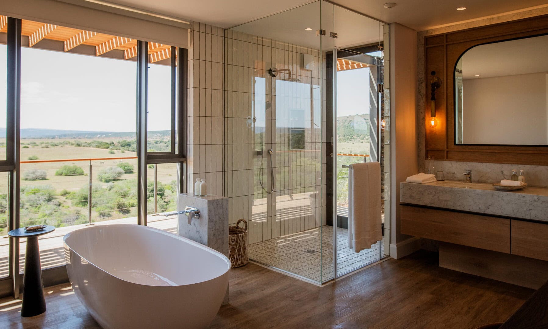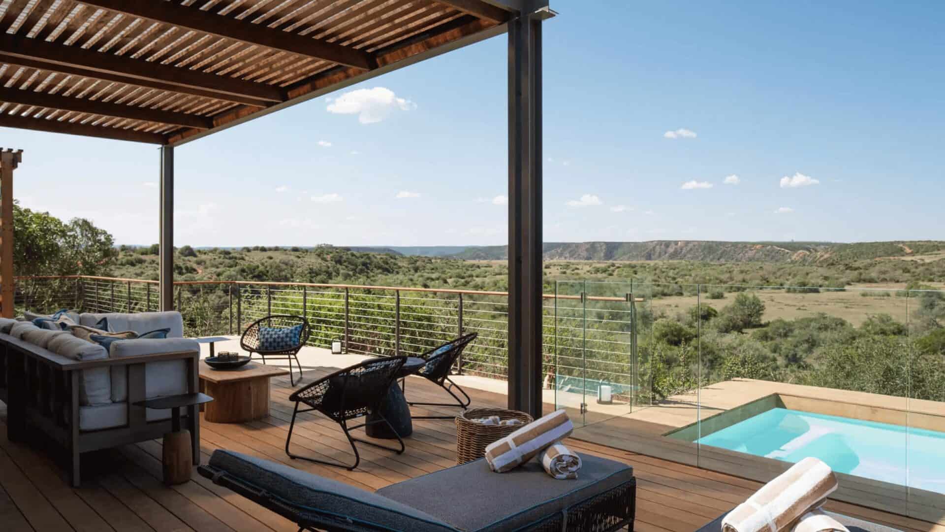 Situated in the Eastern Cape’s Shamwari Private Game Reserve, Sarili Private Villa stands above the Bushman’s River with views across grassy plains. This exclusive retreat houses river-facing rooms, offering an intimate safari experience where wildlife roams freely beyond your window.