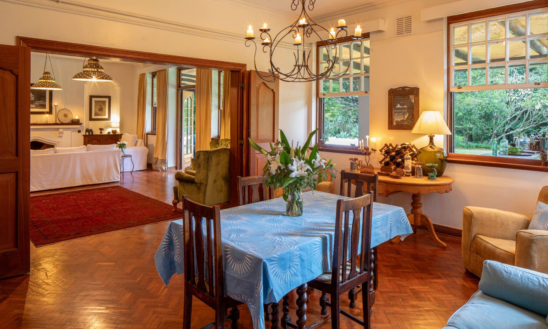 Serian’s ‘Secret Garden’ is a classic Cape Dutch farmhouse, 4 acres rising from the highlands shaded with trees and leaves.