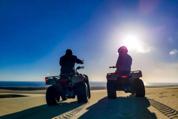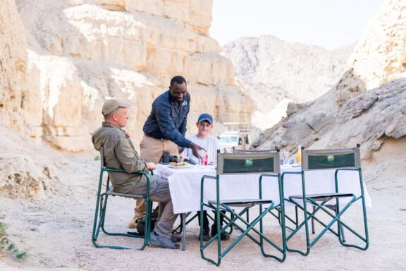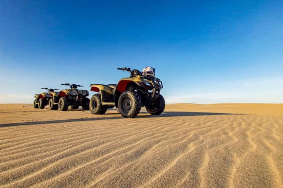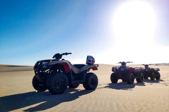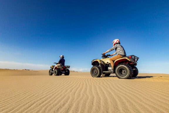 Vehicles of self-drive guests are parked under cover at the pickup point situated at Möwe Bay. Fly-In guests will also be picked up at Möwe Bay. You will then be transferred the 45km north to the Shipwreck Lodge in a closed game drive vehicle.
