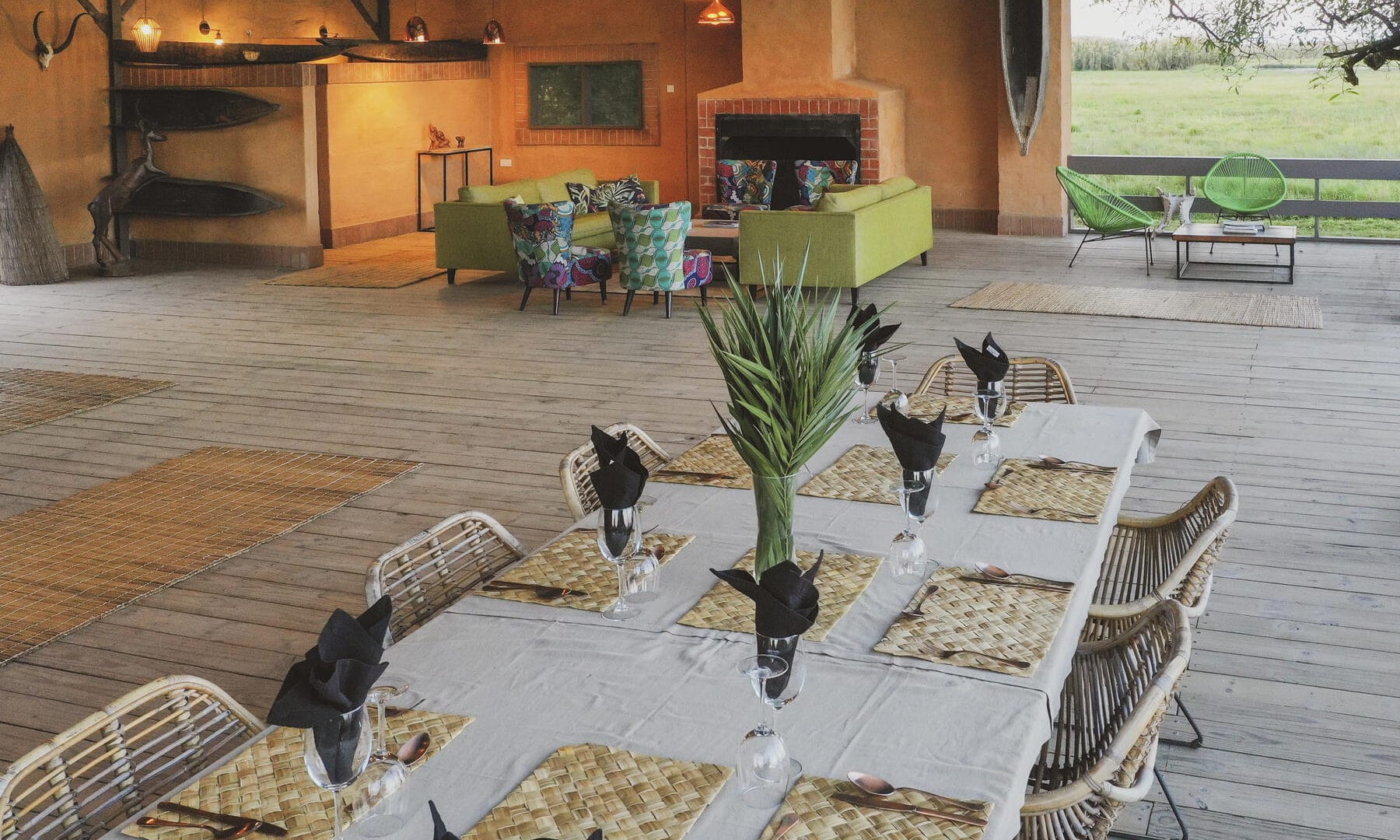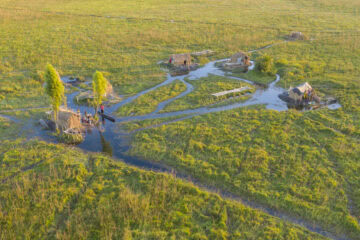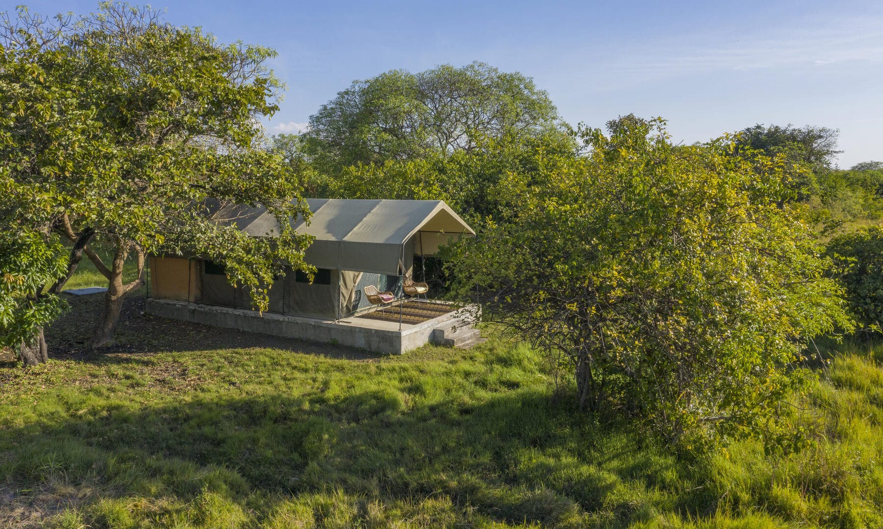 Nestled in a grove of trees on the high flood line of Bangweulu wetland, Shoebill Island Camp’s main area opens onto the vast plains filled with black lechwe and flocks of diverse water birds.