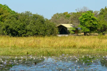 Each of the camps 4 tents (2 double, 2 twin) is appointed with the necessary comforts. Designed to appeal to a broad audience of “not just birders”, Shoebill offers walking, deep hull (photographic) canoeing and mokoro as well as genuine and impromptu community visits with the seasonal fishermen of the region.