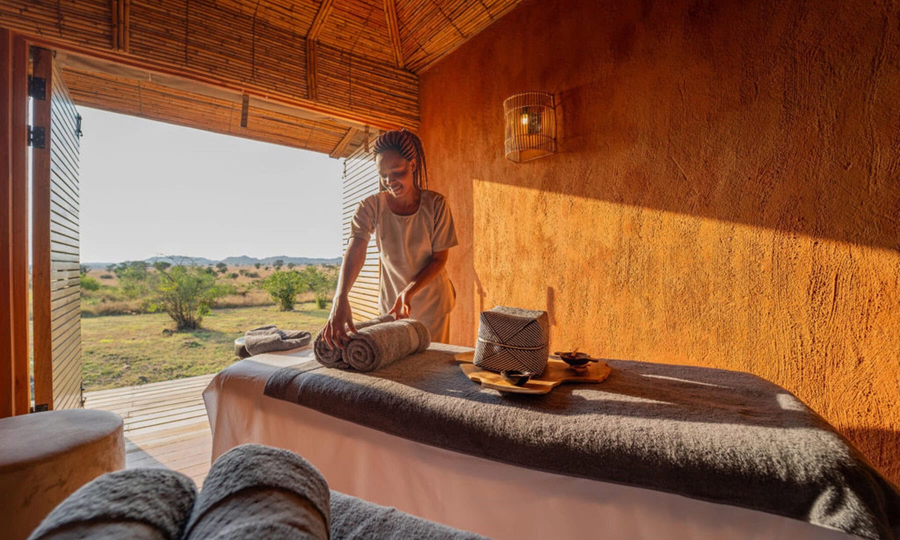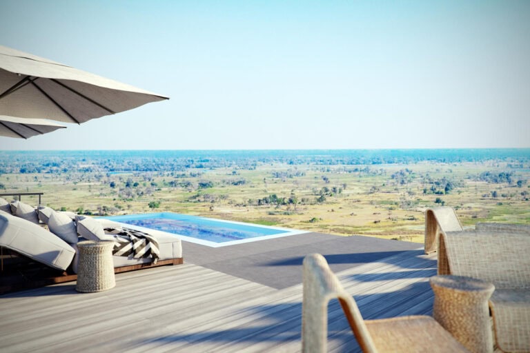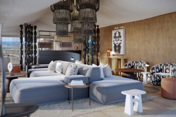 This intimate retreat consists of only six luxury tents, creating an exclusive atmosphere where personalised service and attention to detail thrive. Your spacious safari tent features a private viewing deck and en-suite facilities with an outdoor shower. The single-family tent provides additional space for those travelling with children. The main lodge area showcases sweeping views from its elevated position, whereas the dining deck and lounge areas offer comfortable spaces to unwind between adventures. You can rejuvenate at the spa, cool off in the swimming pool, or gather around the traditional boma for evening meals beneath the stars.