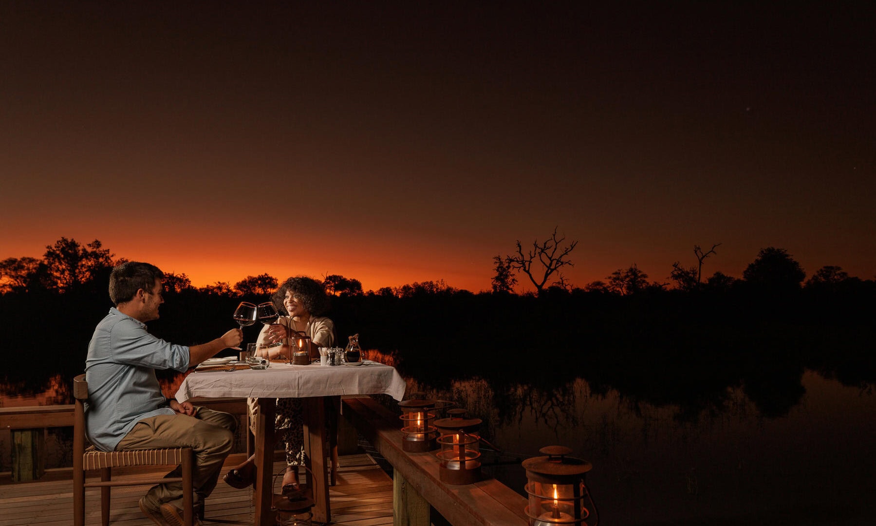 Facilities include a swimming pool, a well-equipped gym, a spa, and a boutique, as well as two unique boma areas—one tucked into the bush and another right at the water’s edge. Morning and evening game drives provide access to the surrounding wilderness, while the lodge’s positioning means wildlife viewing continues even while you’re at rest.