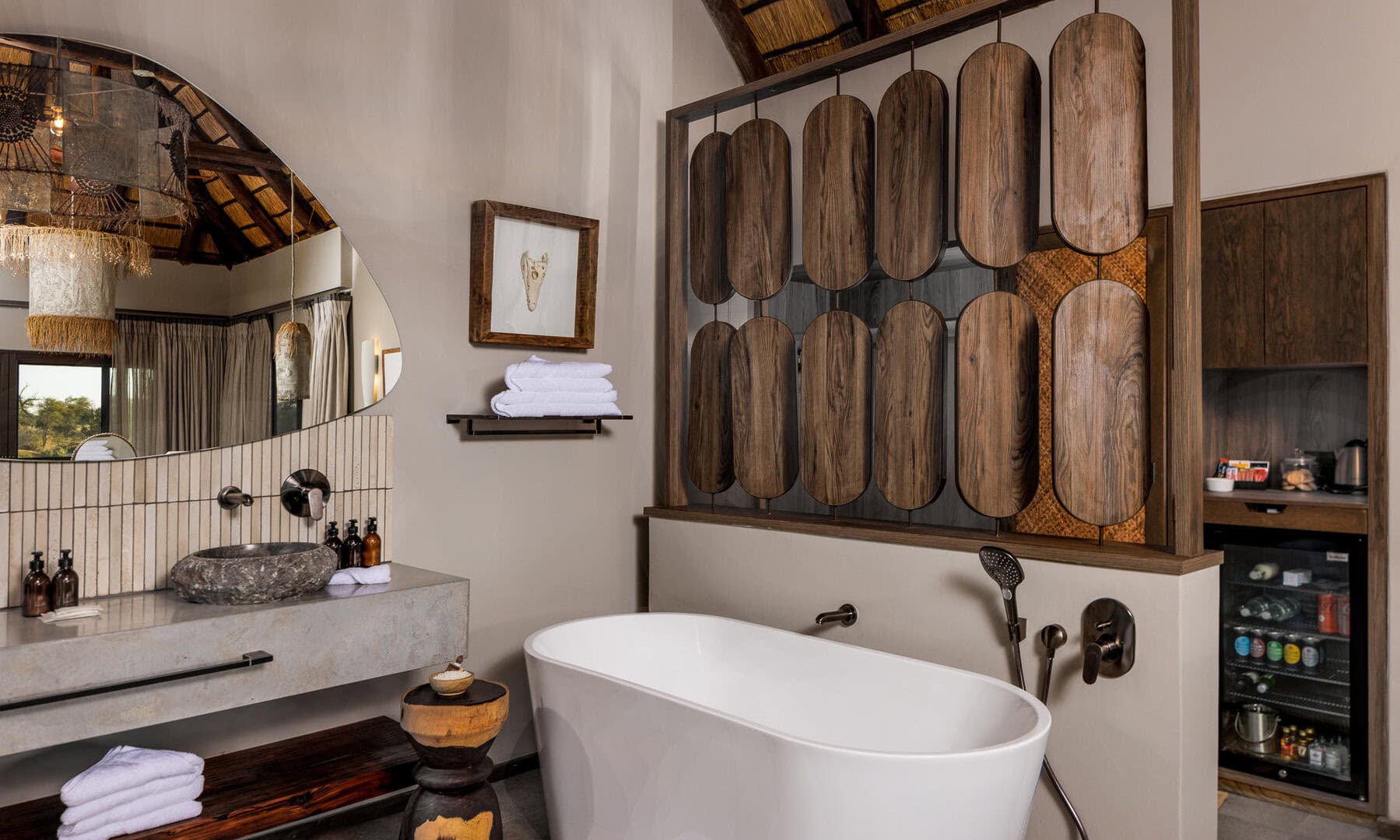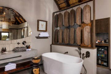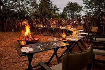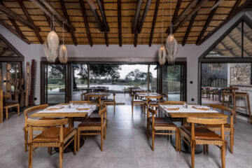 Facilities include a swimming pool, a well-equipped gym, a spa, and a boutique, as well as two unique boma areas—one tucked into the bush and another right at the water’s edge. Morning and evening game drives provide access to the surrounding wilderness, while the lodge’s positioning means wildlife viewing continues even while you’re at rest.