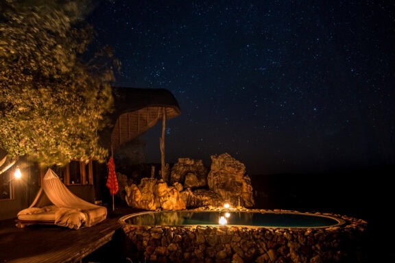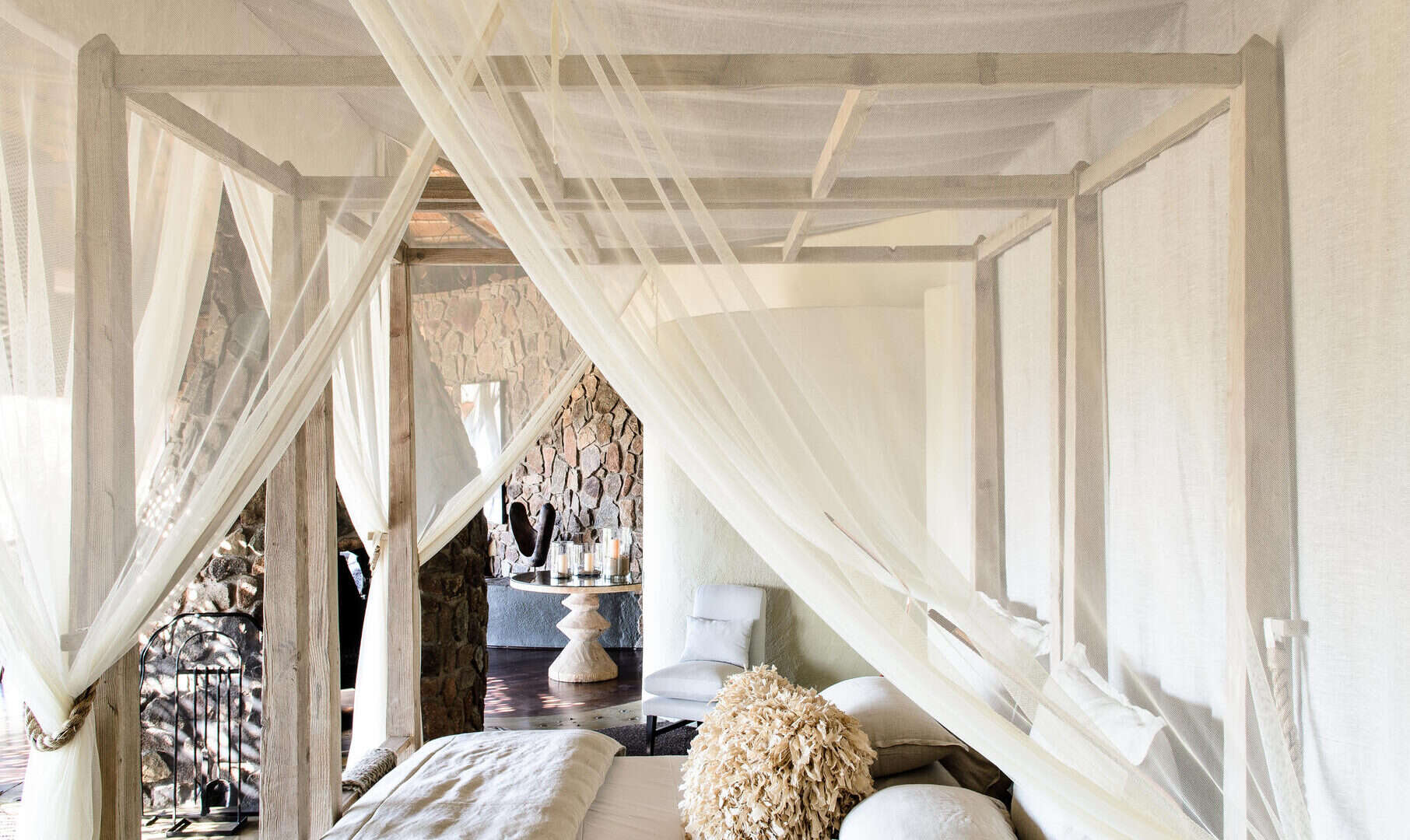 Inspired by ancient organic-shaped stones strewn along in the Sand River, the 12 glass-front suites at Singita Boulders Lodge all feature spacious interiors with fireplaces and open up onto expansive private decks with heated pools and outdoor showers – allowing guests to continuously connect with this incredible and vast wilderness.