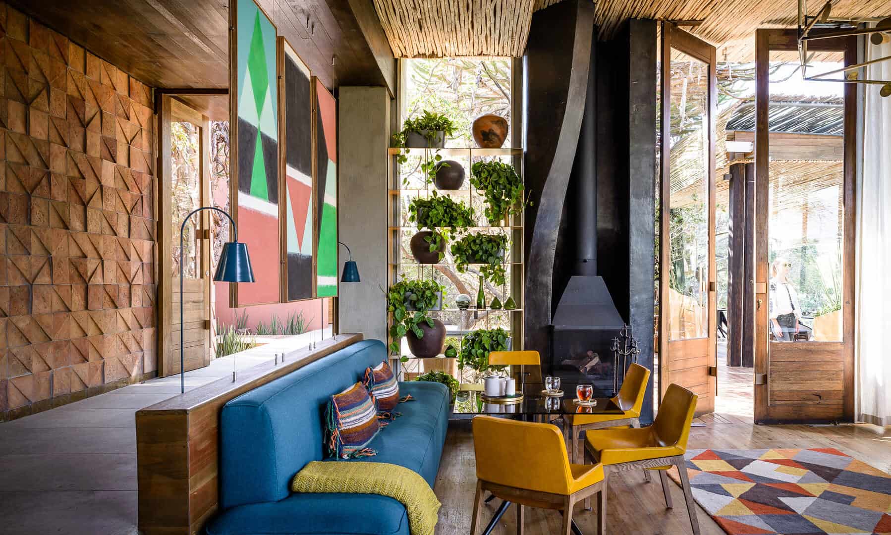 Accommodation at the lodge takes the form of elegant wood and glass boxes designed to float above the river, each connected to the next via elevated wooden walkways.