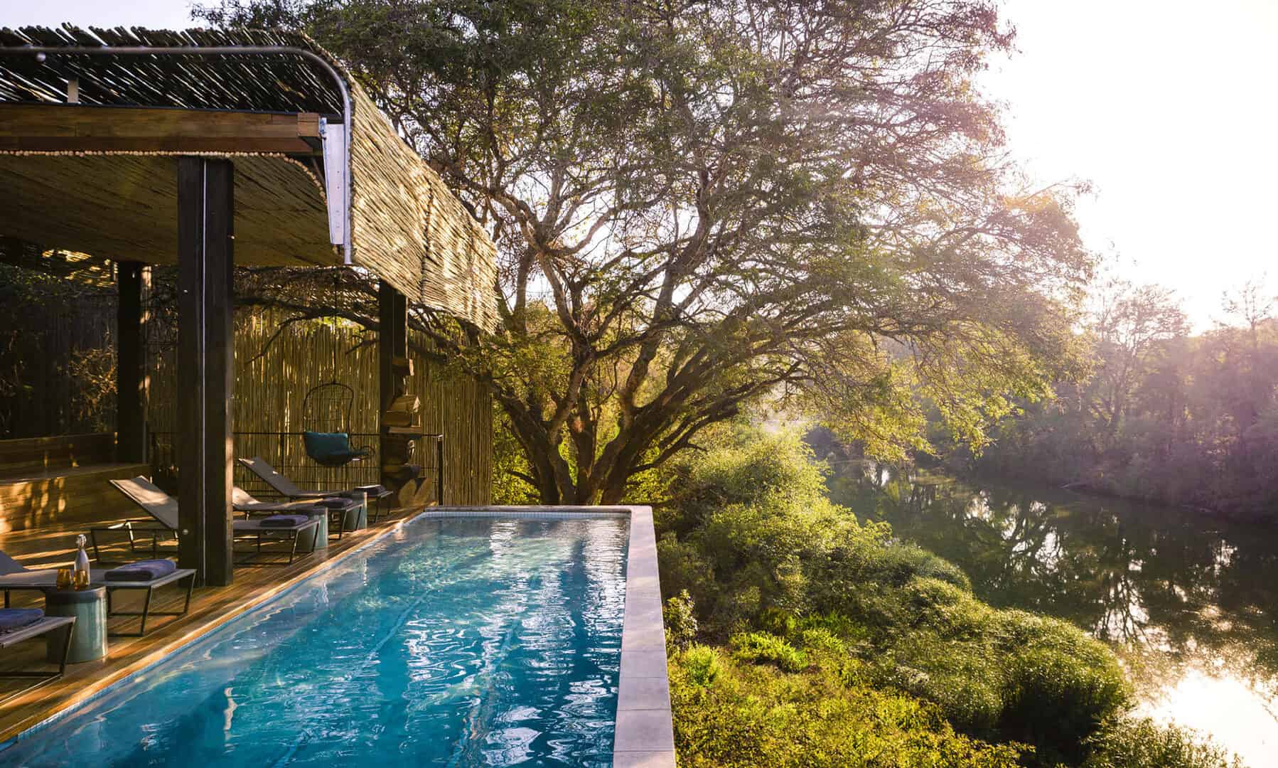 Singita Sweni Lodge is nestled among hundreds of trees on the banks of the Sweni River within a 33,000 acre private concession in the Kruger National Park.