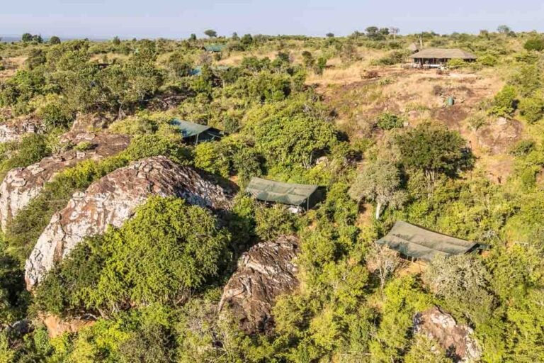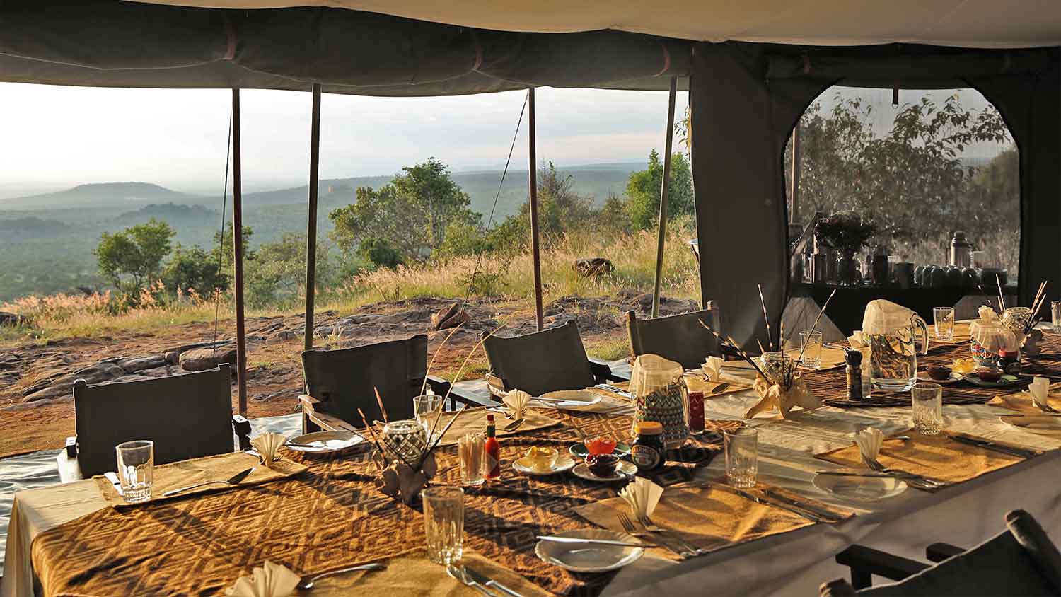 The mess tent sits at the top of a ridge overlooking a salt lick and waterhole, where elephant and Grevy’s zebra are regular visitors.