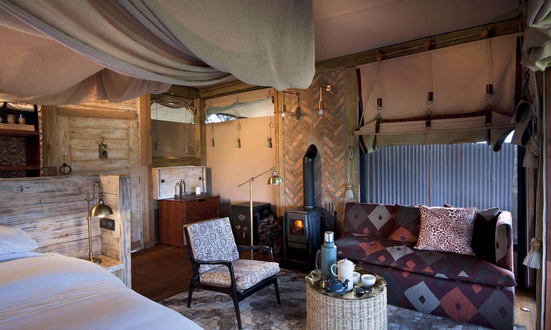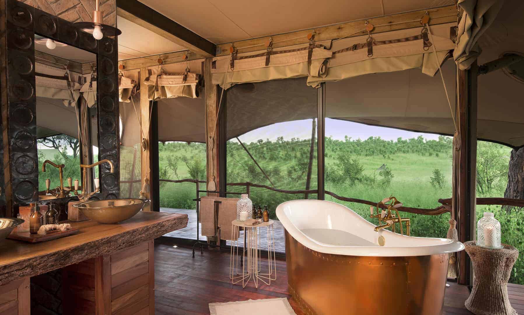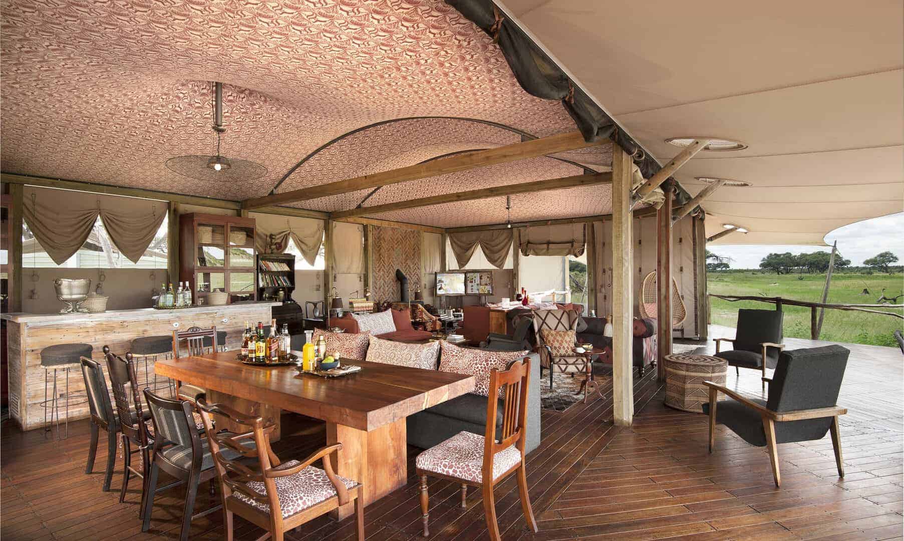 Nature and luxury are in harmony at Somalisa Camp. With natural wood and copper finishes, the organic features of the bush fuse perfectly with the deluxe style. Kudhinda, the Zimbabwean national material, is paired with modern decor creating an authentic contemporary African fusion. At the edge of the expansive deck in the main area, sits an elephant pool which is frequented by elephant families, which is a true highlight at this beautiful camp.