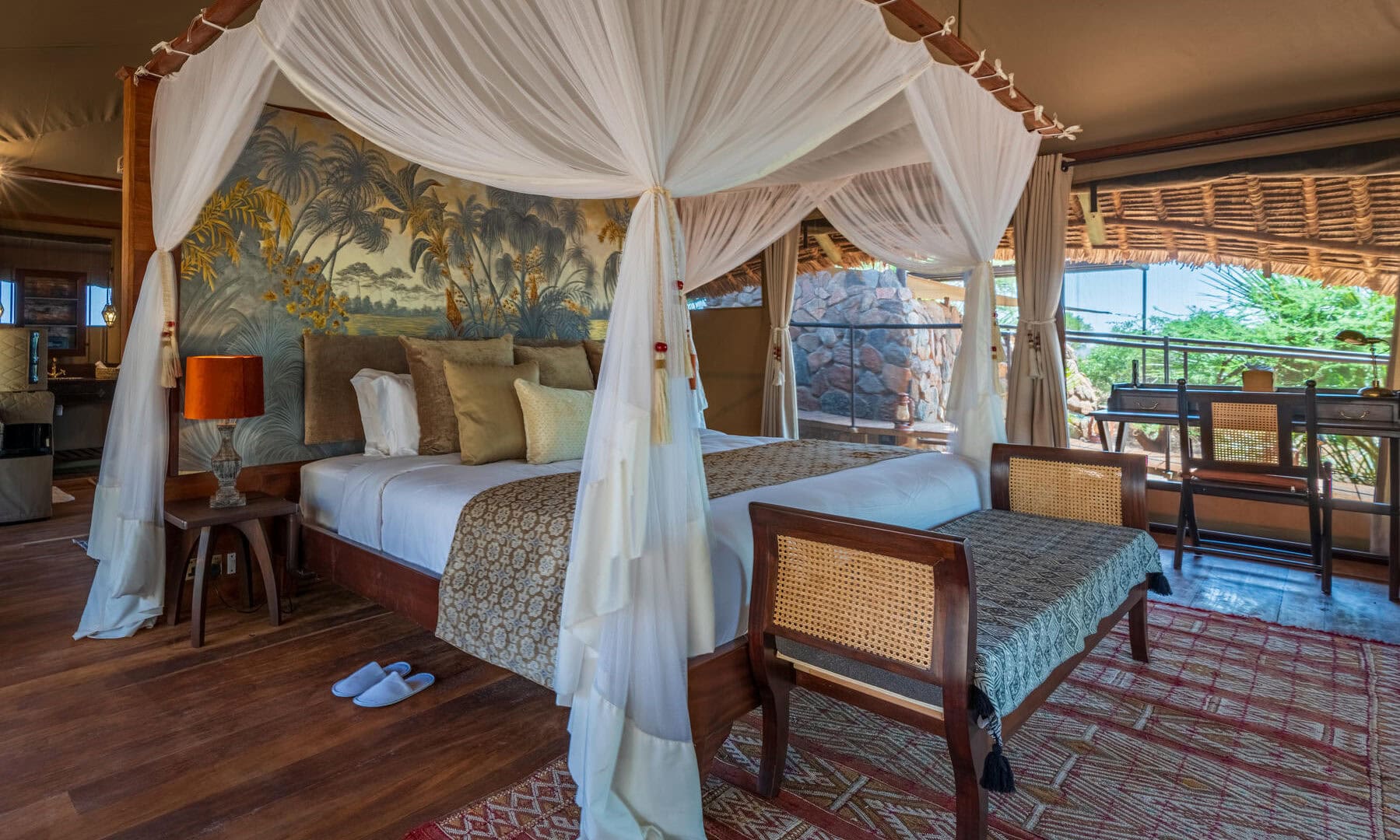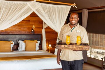 The deluxe luxury tented suites, elevate your stay to extraordinary heights with generous living spaces, private 24/7 butlers, outdoor showers, and mesmerizing sleepout decks with star beds. Recline under the celestial canopy as you fall asleep to the soothing lullaby of the river and the whispers of the African night.