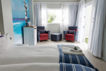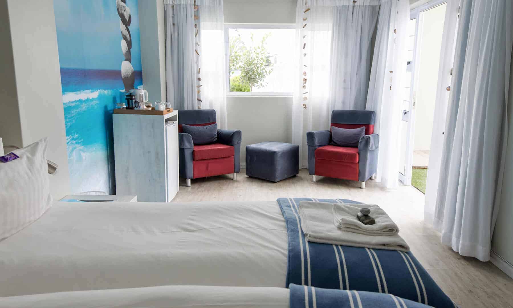 Situated in the town centre, a mere five-minute walk from the beach and main shopping area, Swakopmund Guesthouse is owned and run by the Borg family. We provide excellent ambiance and service for guests wanting to indulge in a comfortable stay-over close to the ocean. The guesthouse offers eight standard rooms, eight luxury rooms, and one family suite – all with en-suite bathrooms. All rooms come complete with minibar and television. We are a bed & breakfast facility, offering more than just the usual by providing guests with a scrumptious breakfast buffet, catering for the more upmarket traveller, with facilities ranging from laundry services to “anything else that guests might ask for". This includes a shuttle service and wheelchair-friendly accommodation. The Swakopmund Guesthouse is run with an eco-friendly approach, making use of solar energy. We are an owner-run property, with top management being close by at all times making sure the service level is at its best throughout your stay.