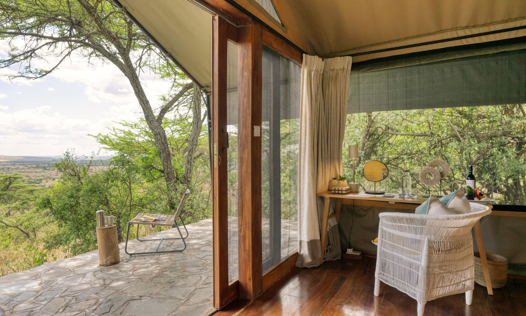The thoughtfully designed and tastefully decorated main building is located at the top of the property and offers truly stunning views of the Serengeti National Park. Featuring a stunning infinity pool and outdoor spaces that offer breathtaking views, allowing you to fully immerse yourself in the splendor of nature. Indulge in the delightful cuisine, skillfully prepared by the talented local team, while observing the majestic resident wildlife that roams the area.