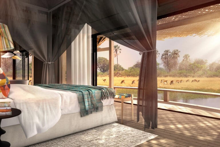 Tawana’s location makes it a hotspot for wildlife viewing, with twice-daily game drives exploring the diverse ecosystems of the Moremi Game Reserve. You can also enjoy birding excursions, wellness treatments at the on-site spa, and a 16-meter lap pool.