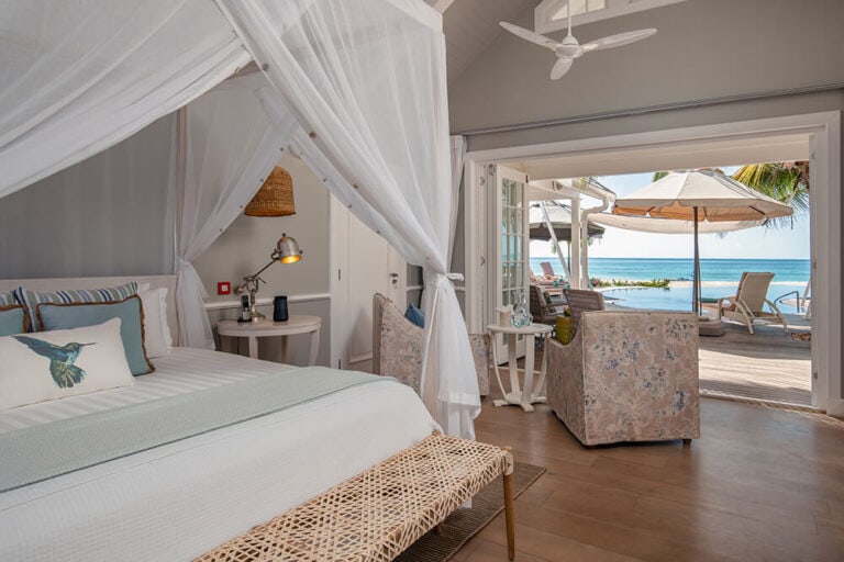 The island’s centerpiece is an elegant Villa featuring five air-conditioned luxury suites that open directly onto pristine white-sand beaches. Each suite is thoughtfully designed to provide you with direct access to both the beach and the Villa’s stunning rim-flow swimming pool.