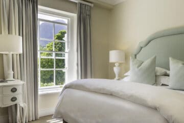 All rooms boast breathtaking views of South Africa’s iconic Table Mountain range and the property’s extraordinary gardens.