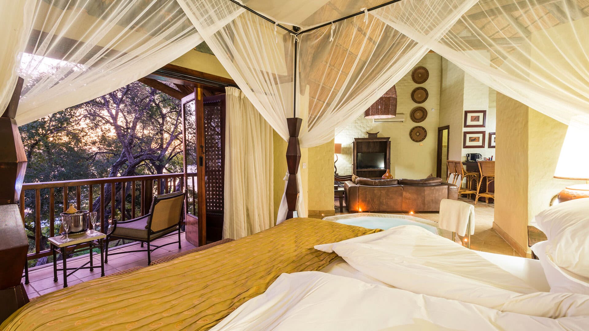 The David Livingstone Safari Lodge & Spa is located on the Zambezi River banks with stunning views of the Mosi-Oa-Tunya National Park.