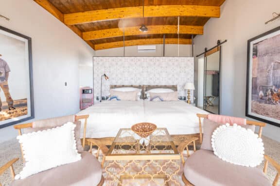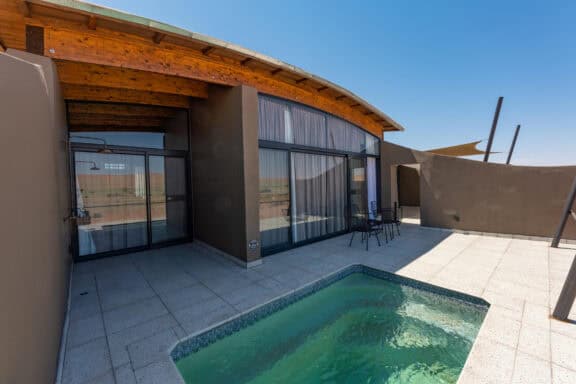 Graceful spaces and gracious hospitality imbue this modern lodge with its elegance of yesteryear, spirited character and refreshingly stylish interior. Sip on a pink gin while appreciating the expansive desert scenery from one of the 24 bungalows, each with its own plunge pool.